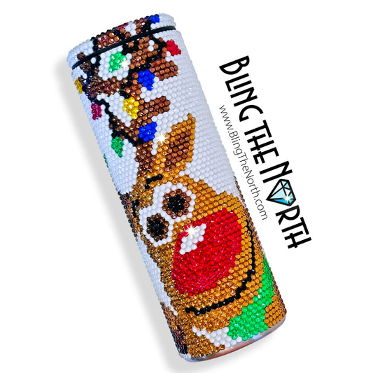 TANGLED REINDEER Rhinestone Tumbler | 20oz Slurp Straight | Bling the North | Custom Bling Design | Glass Rhinestones | Straw Included