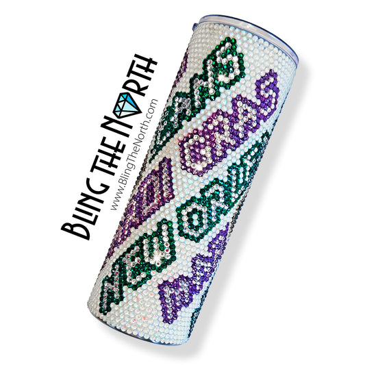 MARDI GRAS Fleur-de-lis New Orleans Rhinestone Tumbler | 24oz Plump Straight | Custom Bling Design | Glass Rhinestones | Straw Incl | Beehive Bumble