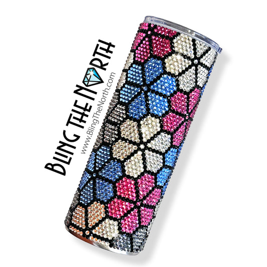 FLOWER POWER Rhinestone Tumbler | 24oz Plump Straight | Bling the North | Custom Bling Design | Glass Rhinestones | Straw Included