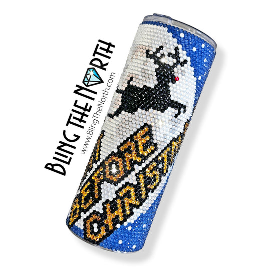 CHRISTMAS EVE Rhinestone Tumbler | 24oz Plump Straight | Custom Bling Design | Glass Rhinestones | Straw Included