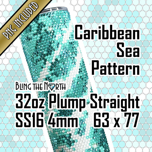 CARIBBEAN SEA Rhinestone Pattern Template | SS16 4mm - 32oz Plump Straight Tumbler Design | PNG for Sublimation or Vinyl