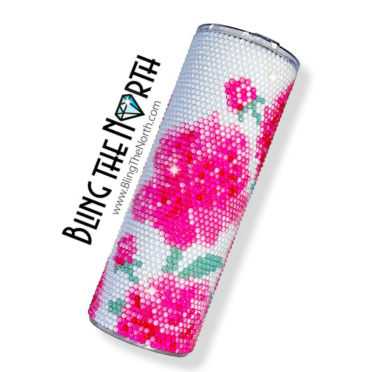 PINK PEONIES Rhinestone Pattern Template | SS16 4mm - 32oz Plump Straight Tumbler Design | PNG for Sublimation or Vinyl