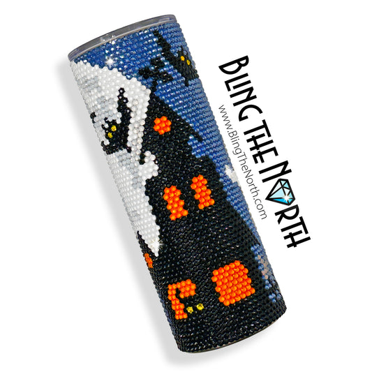 HAUNTED CHURCHYARD Rhinestone Tumbler | 20oz Skinny Straight | Bling the North | Custom Bling Design | Glass Rhinestones | Straw | Halloween