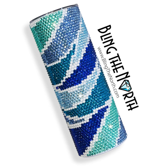 STORMY SEAS Rhinestone Tumbler | 20oz Skinny Straight | Bling the North | Custom Bling Design | Glass Rhinestones | Straw