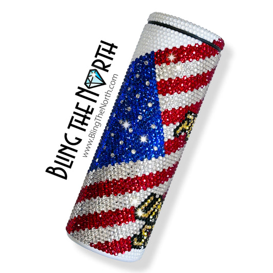 WE THE PEOPLE American Flag Rhinestone Tumbler | 20oz Slurp Straight | Bling the North | Custom Bling Design | Glass Rhinestones | Straw Included