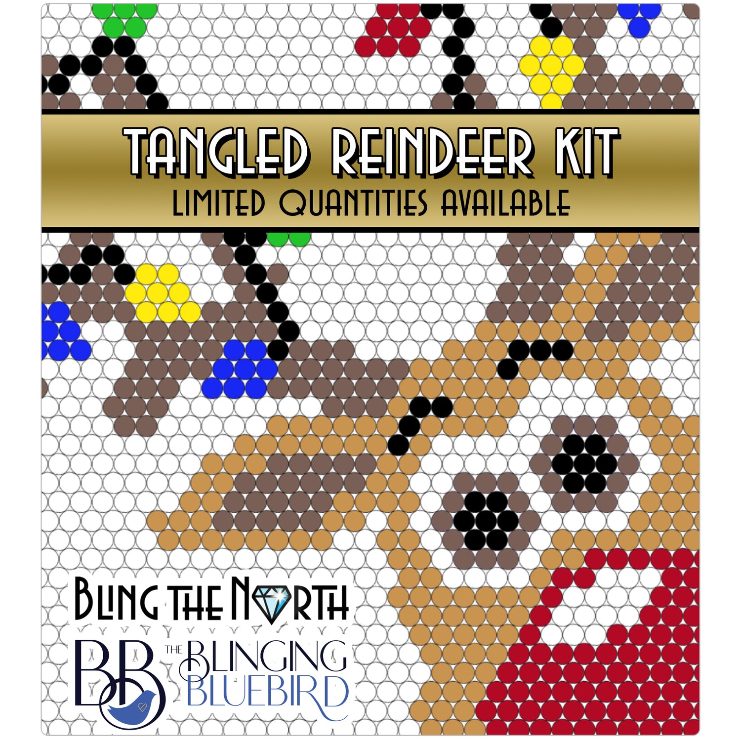 The TANGLED REINDEER KIT contains a 20oz sublimated tumbler, high quality glass rhinestones, instructions, a color key and more! Click below to purchase the kit on The Blinging Bluebird website or scroll down for the pattern template.