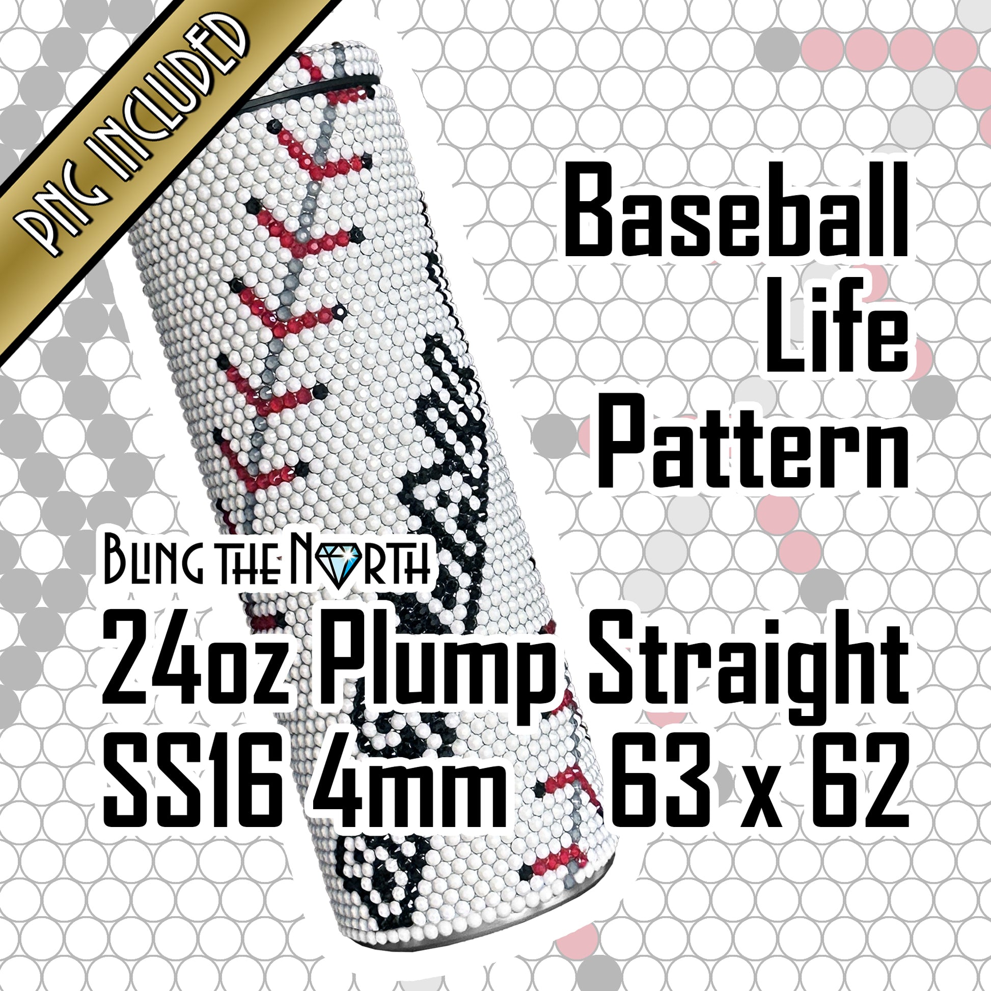 BASEBALL LIFE Custom NAME Rhinestone Pattern Template | SS16 4mm - 24oz Plump Straight Tumbler Design | PNG for Sublimation or Vinyl