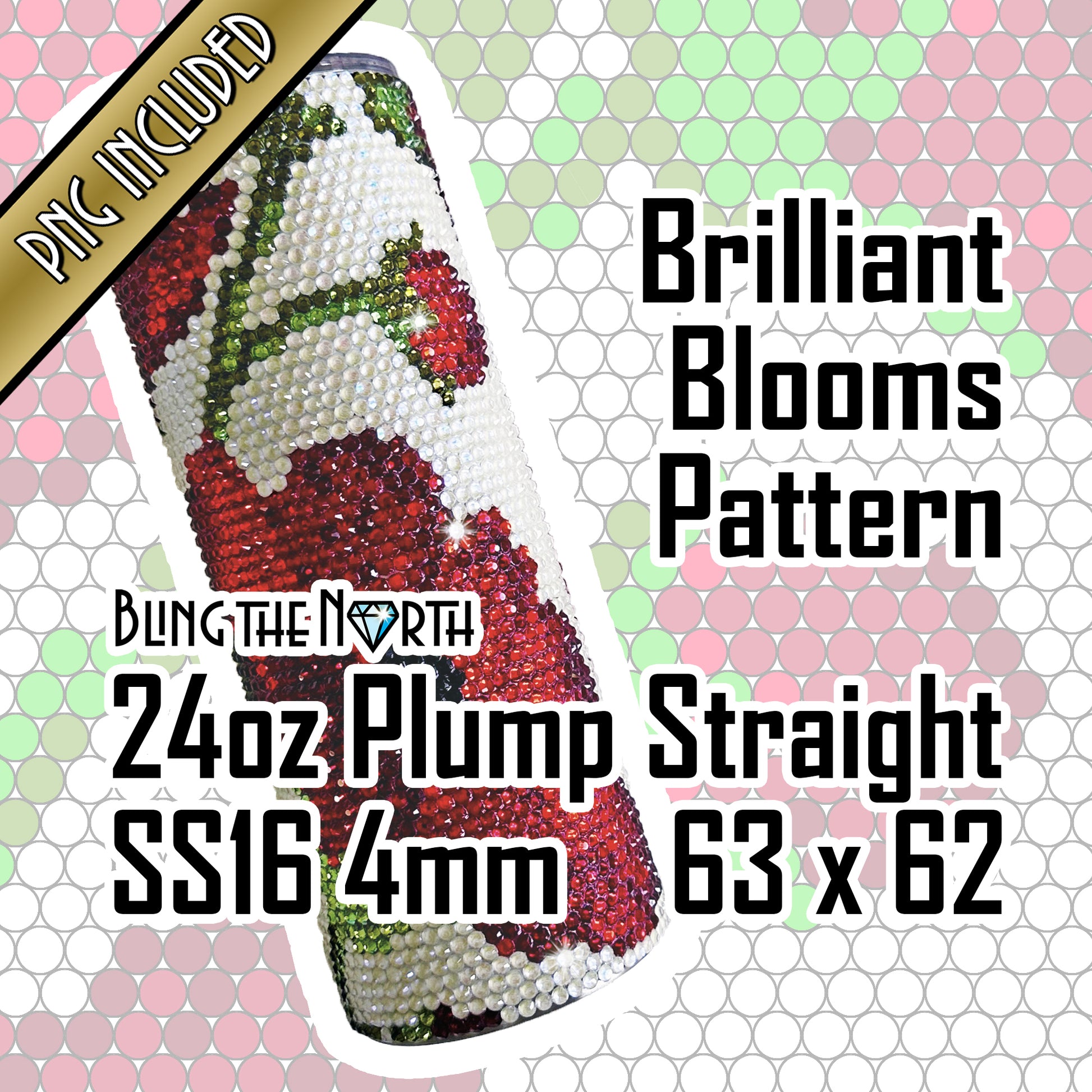BRILLIANT BLOOMS Rhinestone Pattern Template | SS16 4mm - 24oz Plump Straight Tumbler Design | PNG for Sublimation or Vinyl