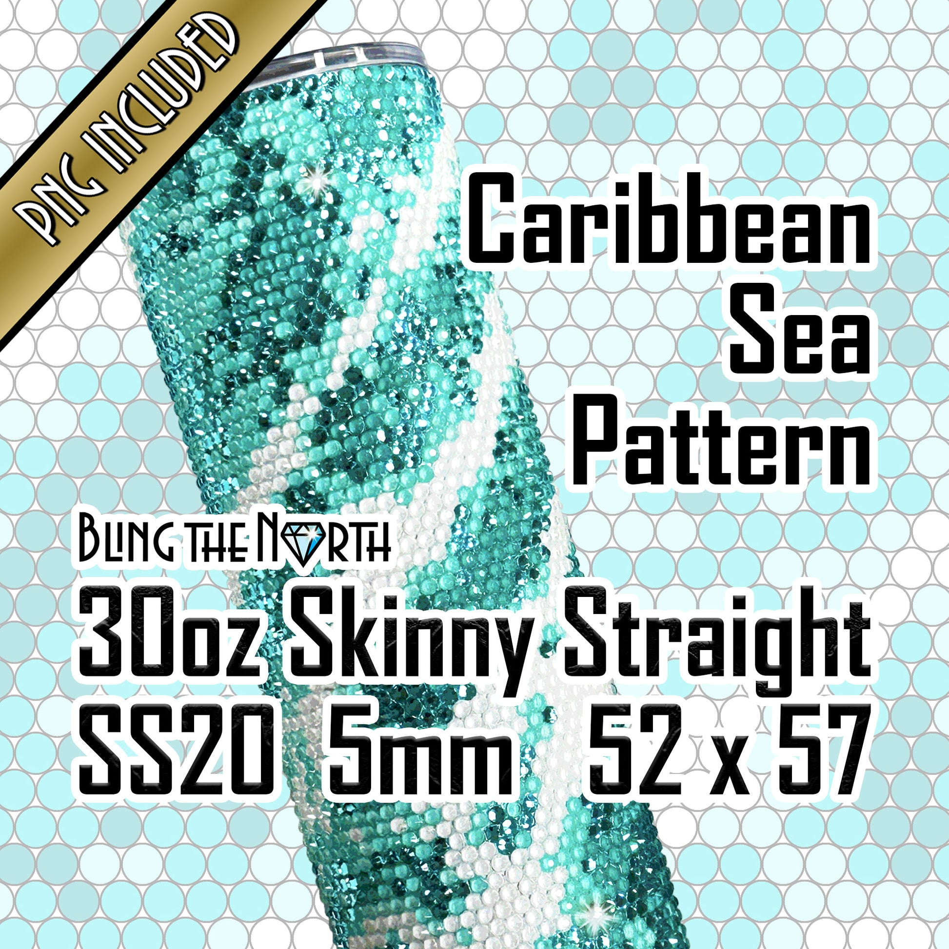 CARIBBEAN SEA Rhinestone Pattern Template | SS20 5mm - 30oz Skinny Straight Tumbler Design | PNG for Sublimation or Vinyl