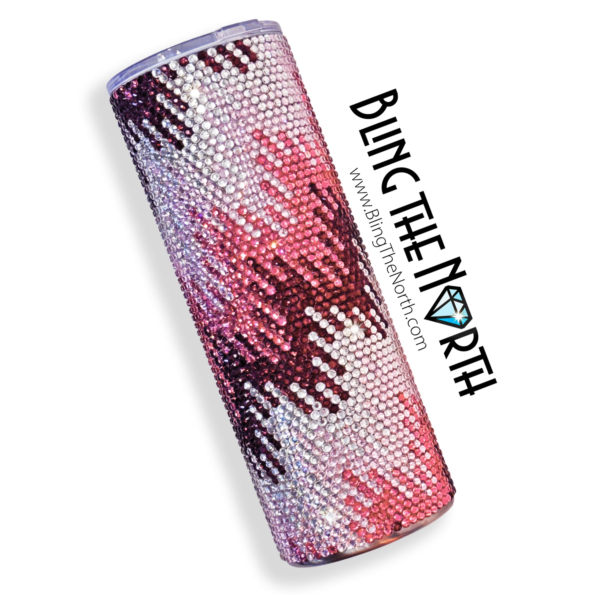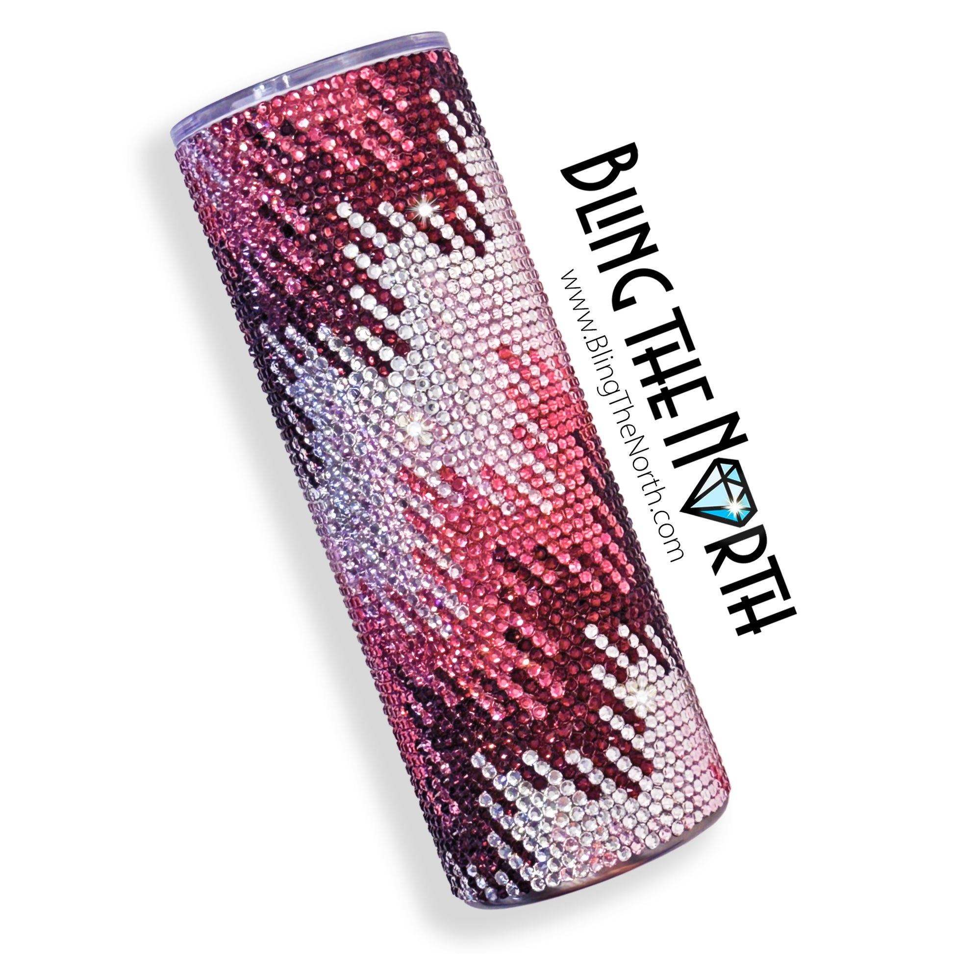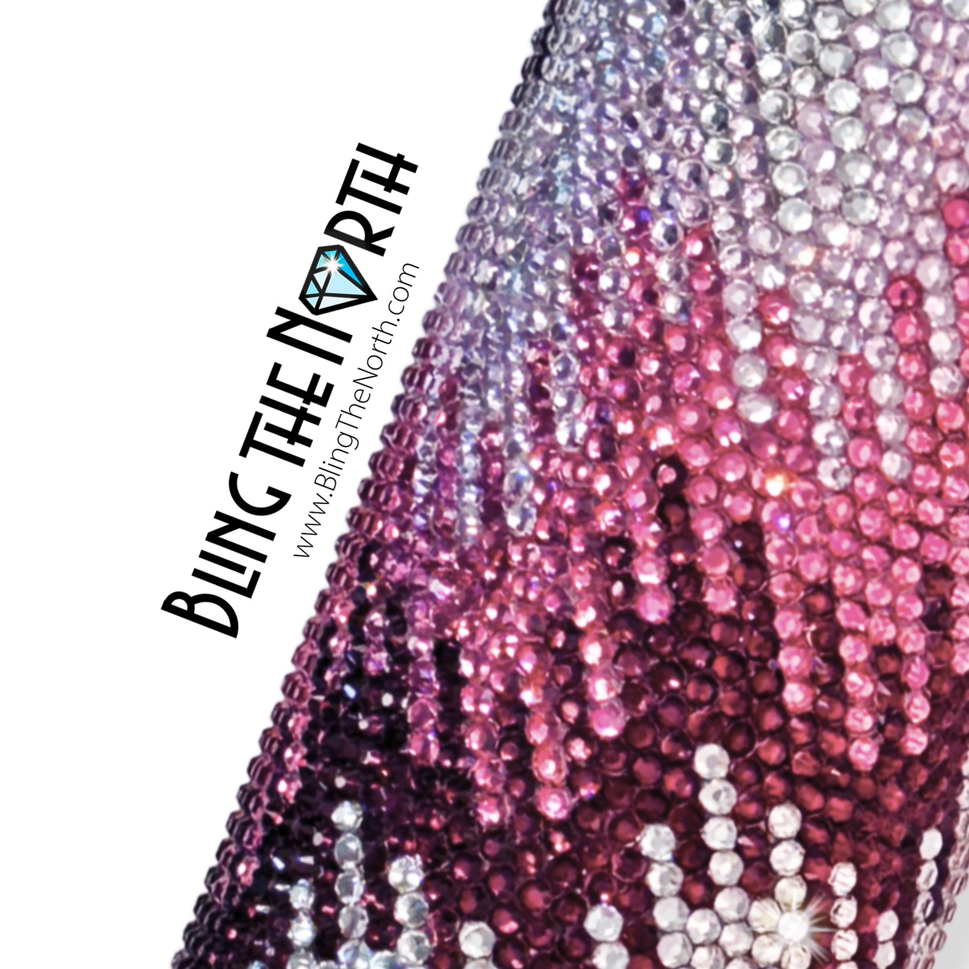 This pattern was designed for use with a 20oz STRAIGHT SKINNY or a 20oz SLURP tumbler from The Stainless Depot using SS16 rhinestones. The tumbler used must fit 61 rhinestones per row for 62 rows. Additional sizes of this design may be available in our store. Pattern is not guaranteed to fit all sizes, styles, or brands of tumblers.