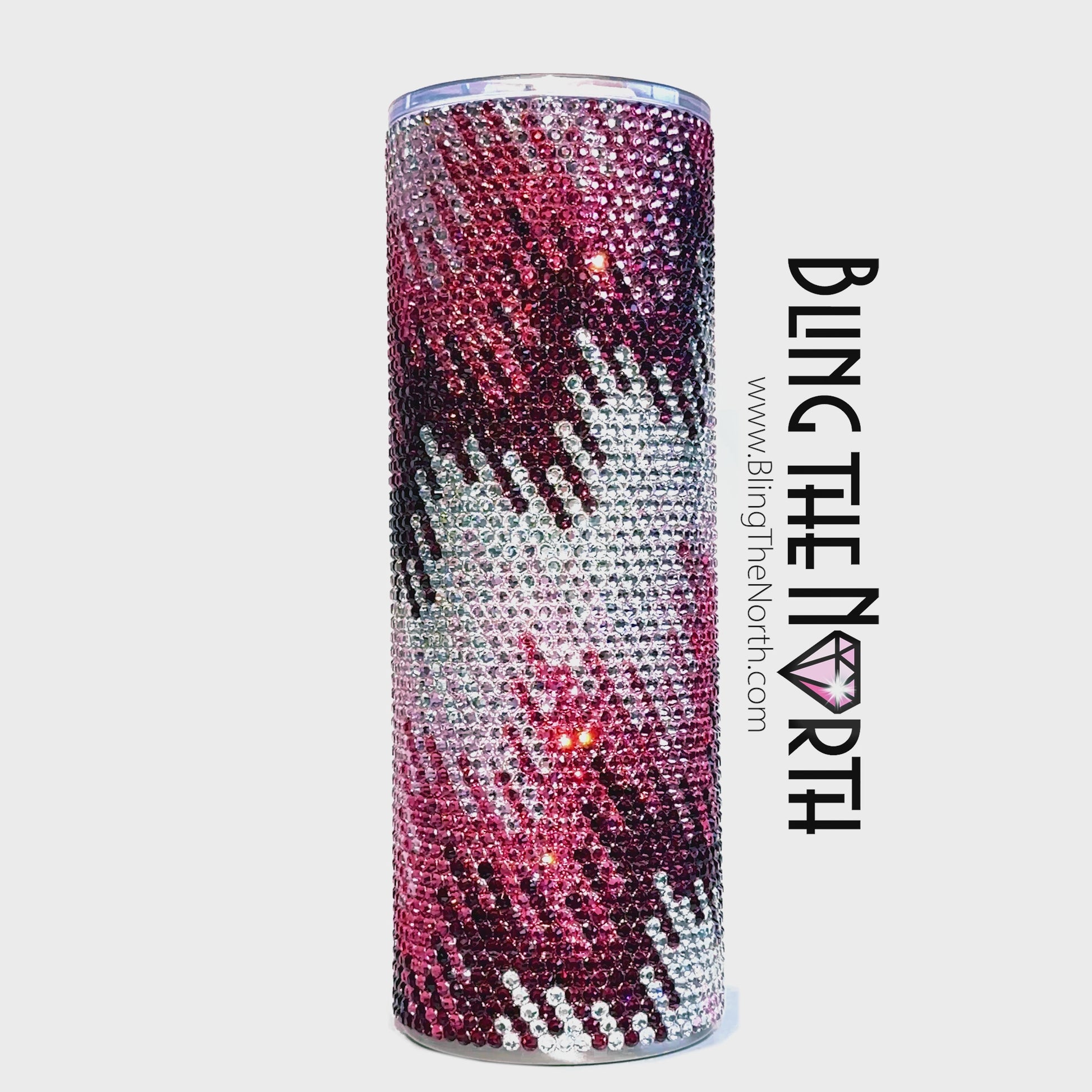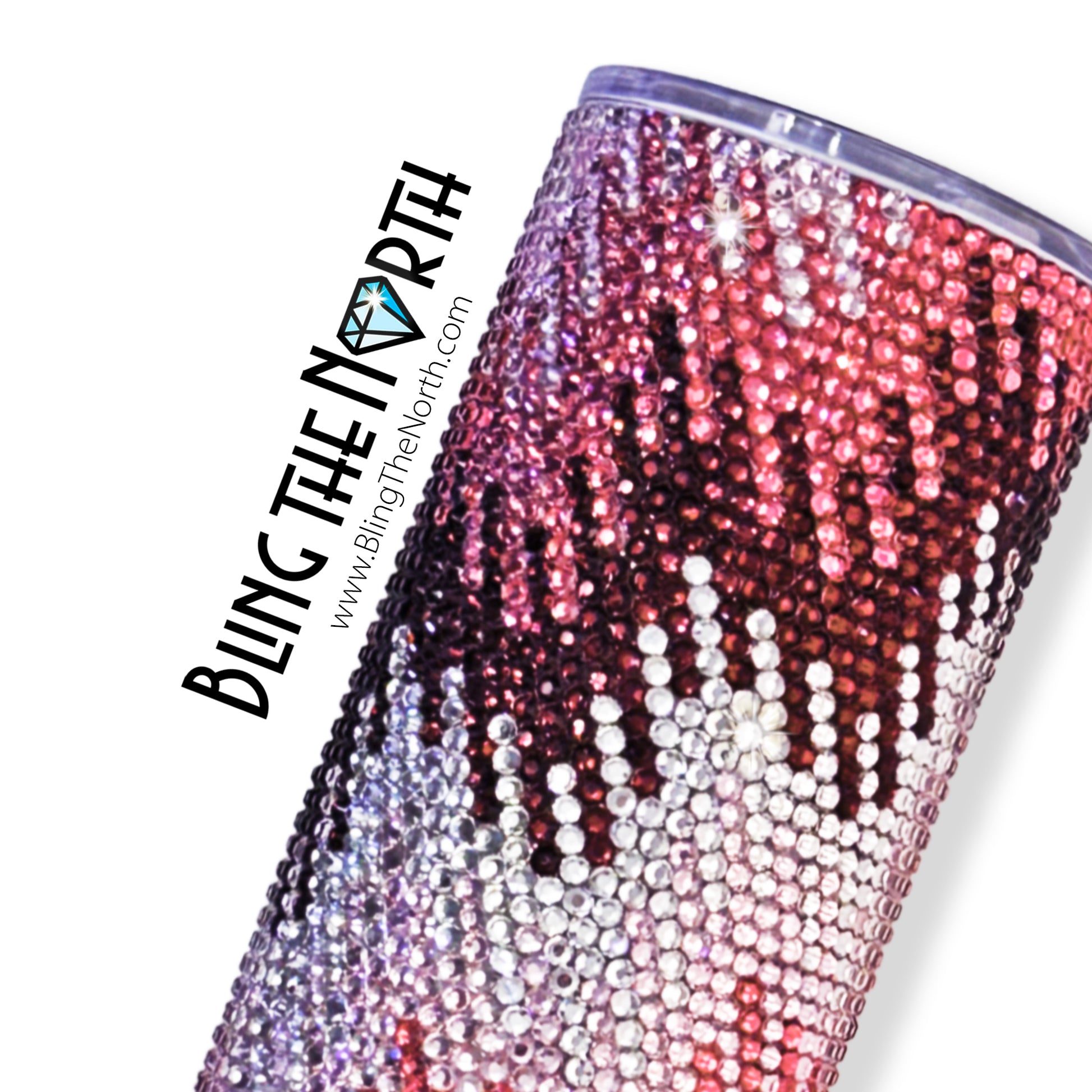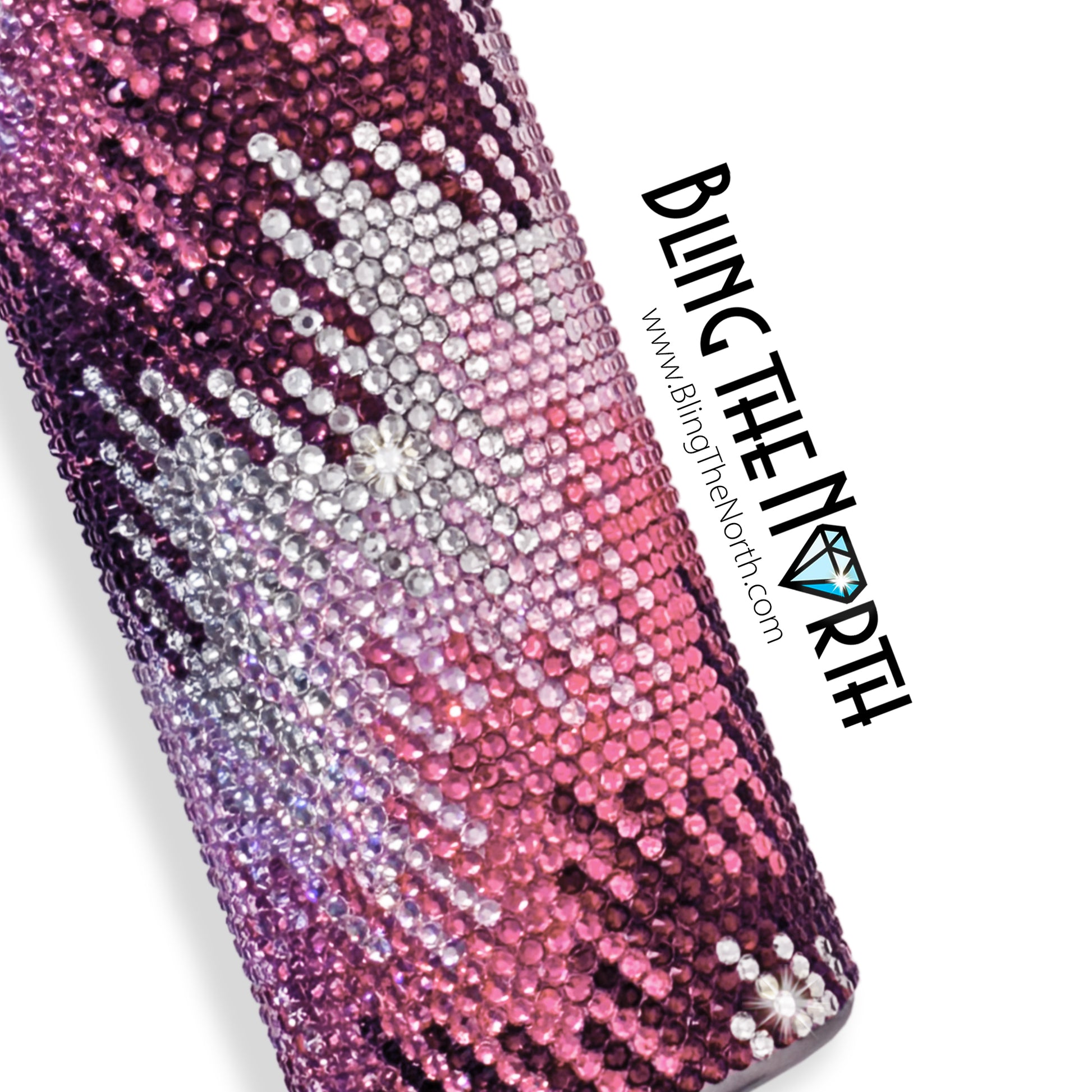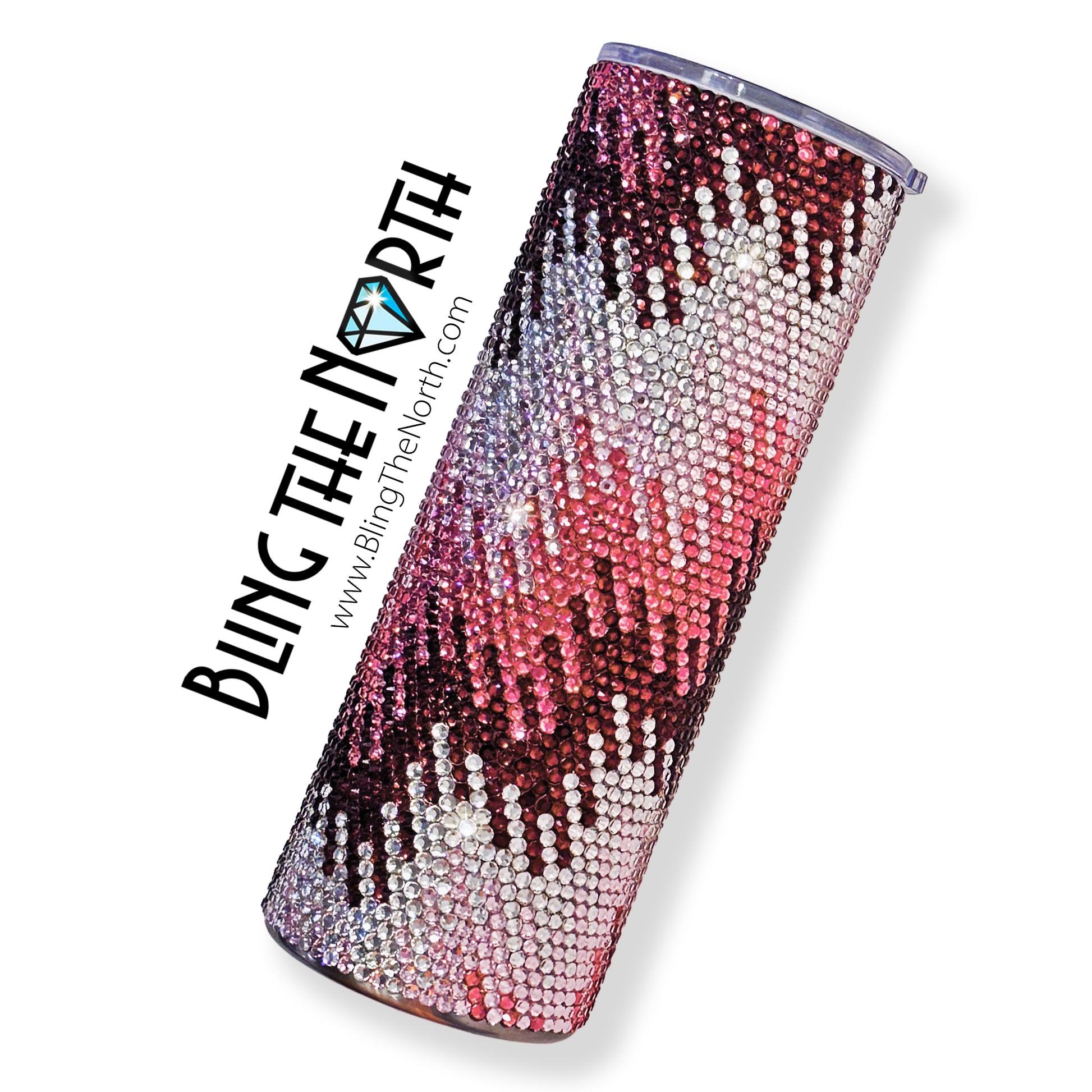 This pattern was designed for use with a 20oz STRAIGHT SKINNY or a 20oz SLURP tumbler from The Stainless Depot using SS16 rhinestones. The tumbler used must fit 61 rhinestones per row for 62 rows. Additional sizes of this design may be available in our store. Pattern is not guaranteed to fit all sizes, styles, or brands of tumblers.