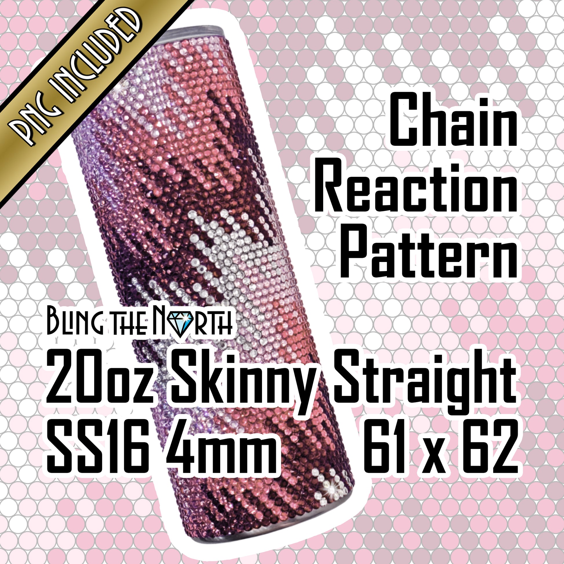 CHAIN REACTION Rose Rhinestone Pattern Template | SS16 4mm - 20oz Skinny Straight Tumbler Design | PNG for Sublimation or Vinyl