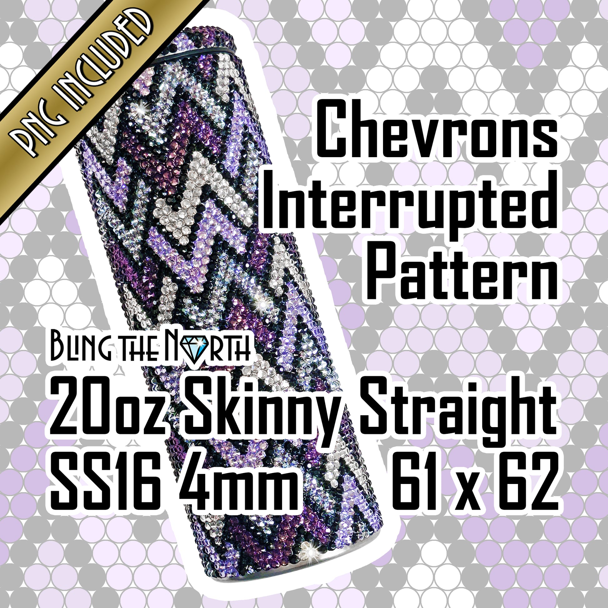 CHEVRONS INTERRUPTED Rhinestone Pattern Template | SS16 4mm - 20oz Skinny Straight Tumbler Design | PNG for Sublimation or Vinyl