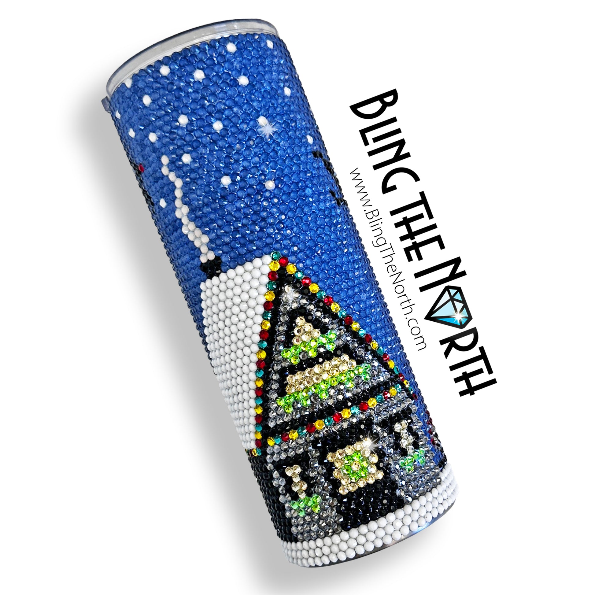 This pattern was designed for use with a 30oz STRAIGHT SKINNY or a 30oz SLURP tumbler from The Stainless Depot using SS16 rhinestones. The tumbler used must fit 66 rhinestones per row for 71 rows. Additional sizes of this design may be available in our store. Pattern is not guaranteed to fit all sizes, styles, or brands of tumblers.