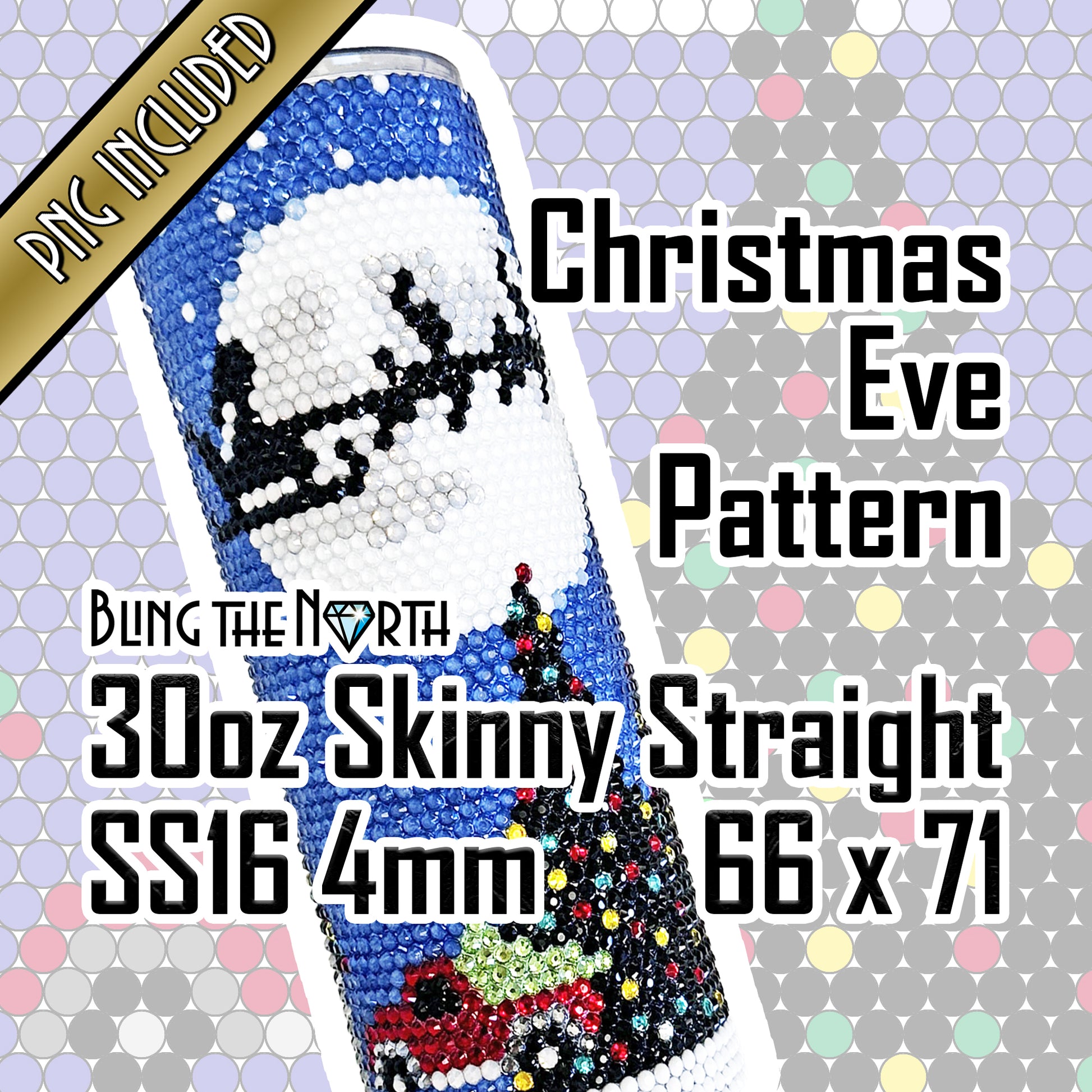 CHRISTMAS EVE Rhinestone Pattern Template | SS16 4mm - 30oz Skinny Straight Tumbler Design | PNG for Sublimation or Vinyl