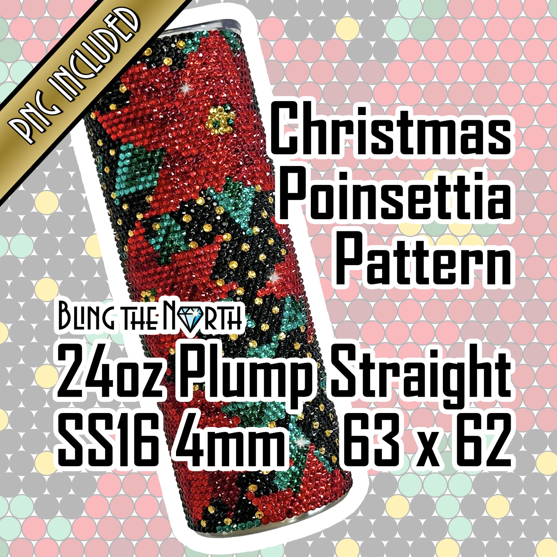 CHRISTMAS POINSETTIA Rhinestone Pattern Template | SS16 4mm - 24oz Plump Straight Tumbler Design | PNG for Sublimation or Vinyl