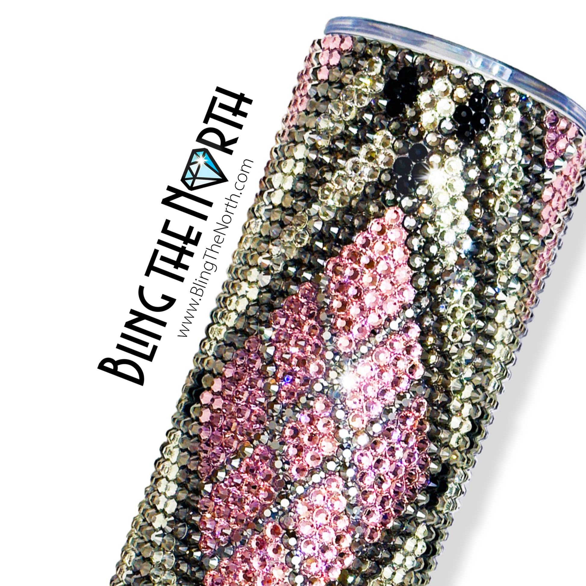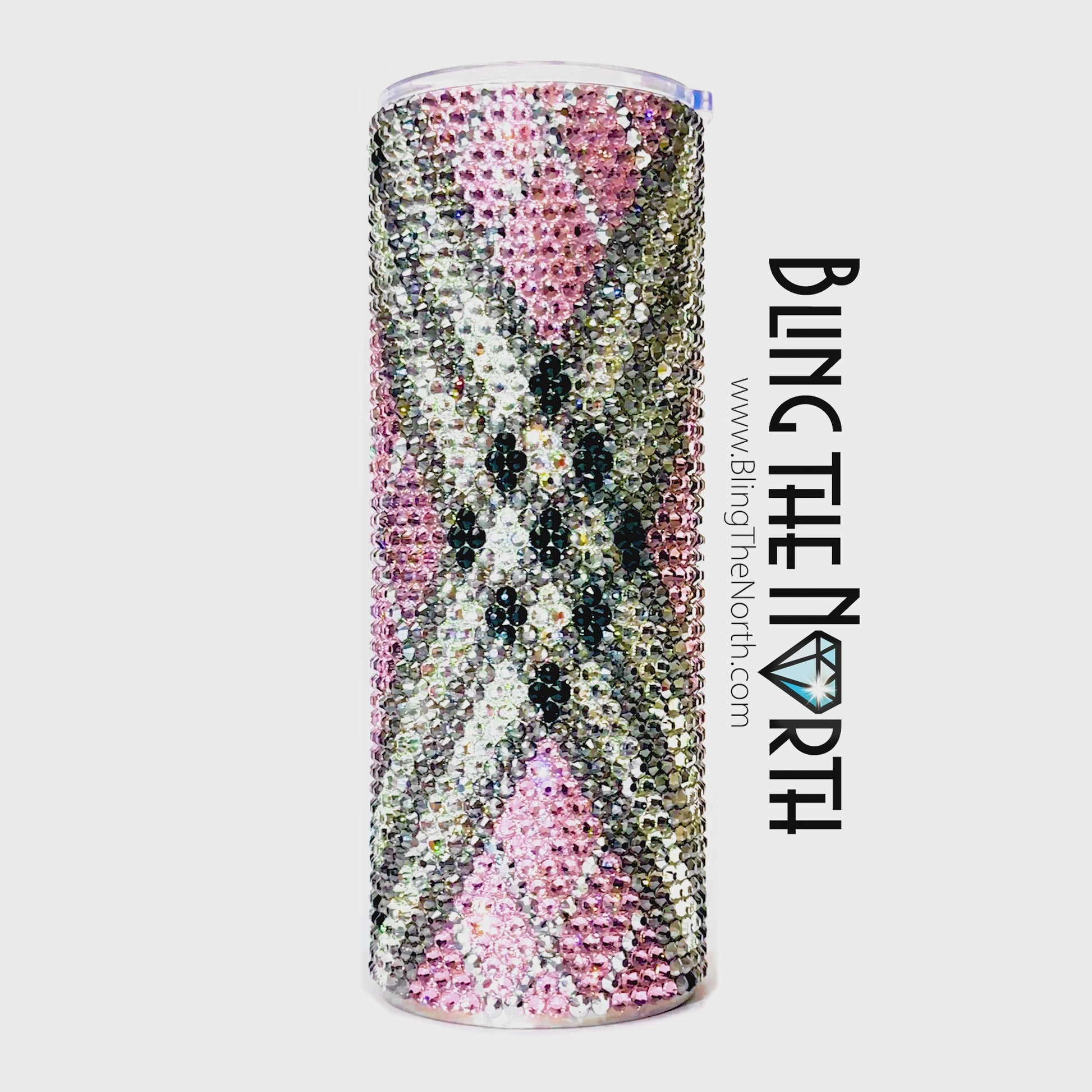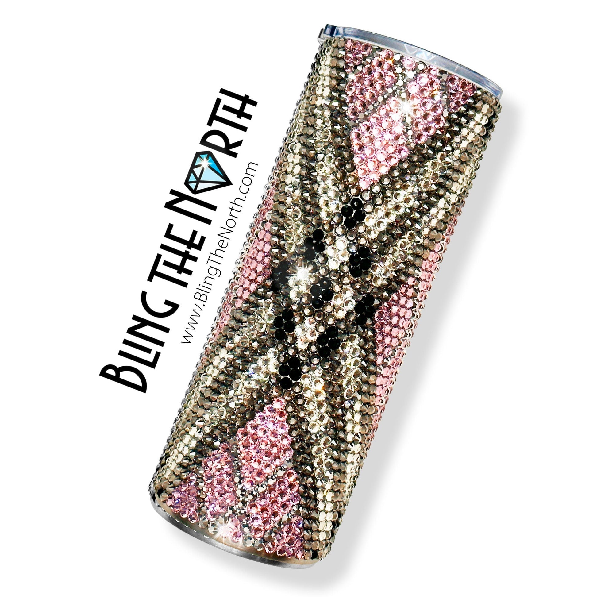 This pattern was designed for use with a 16oz PLUMP TUMBLER or the 12oz SLIM KEWLZIE from The Tipsy Magnolia using SS20 rhinestones. The tumbler used must fit 50 rhinestones per row for 35 rows. Additional sizes of this design may be available in our store. Pattern is not guaranteed to fit all sizes, styles, or brands of tumblers.