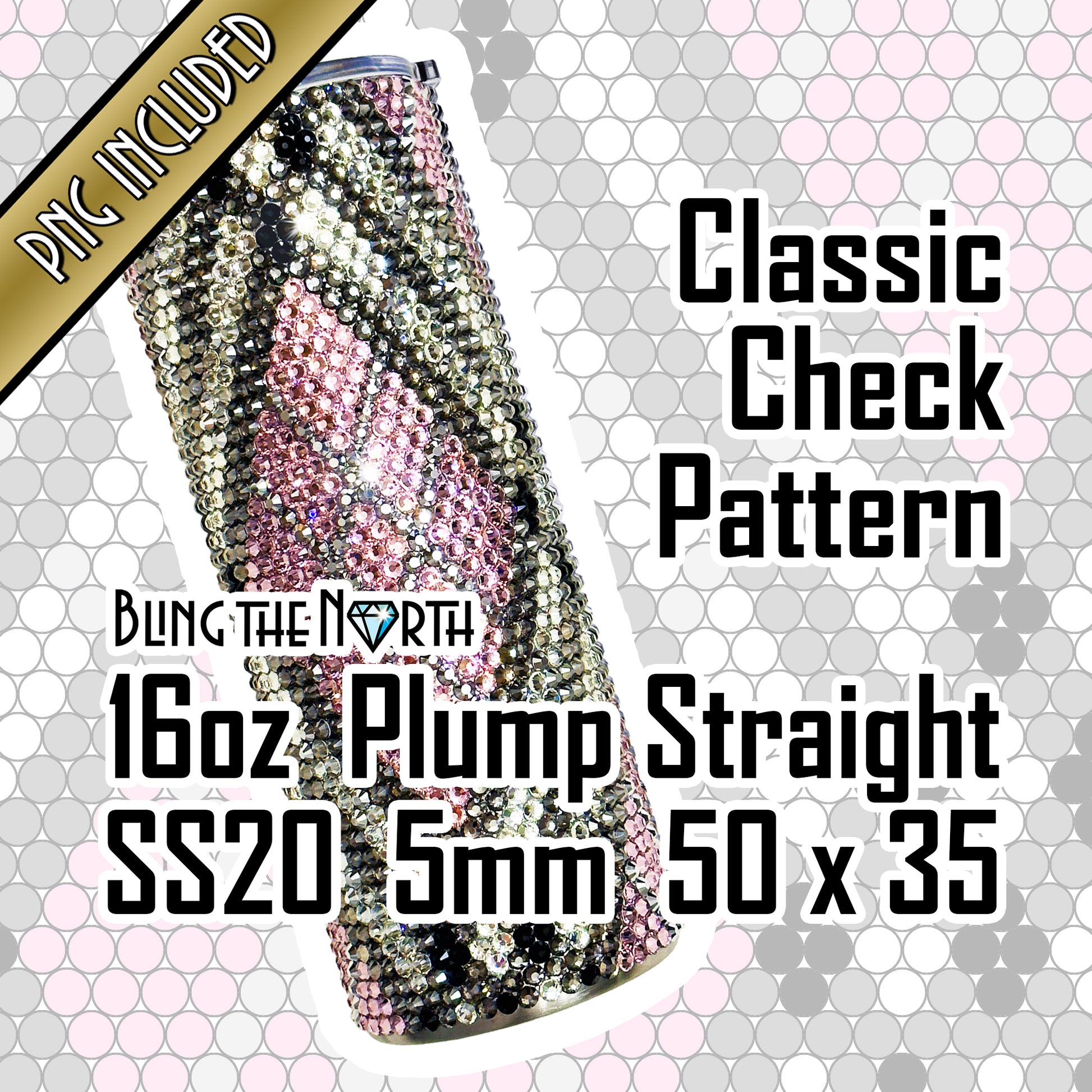 CLASSIC CHECK Rhinestone Pattern Template | SS20 5mm - 16oz Plump Straight Tumbler Design | PNG for Sublimation or Vinyl