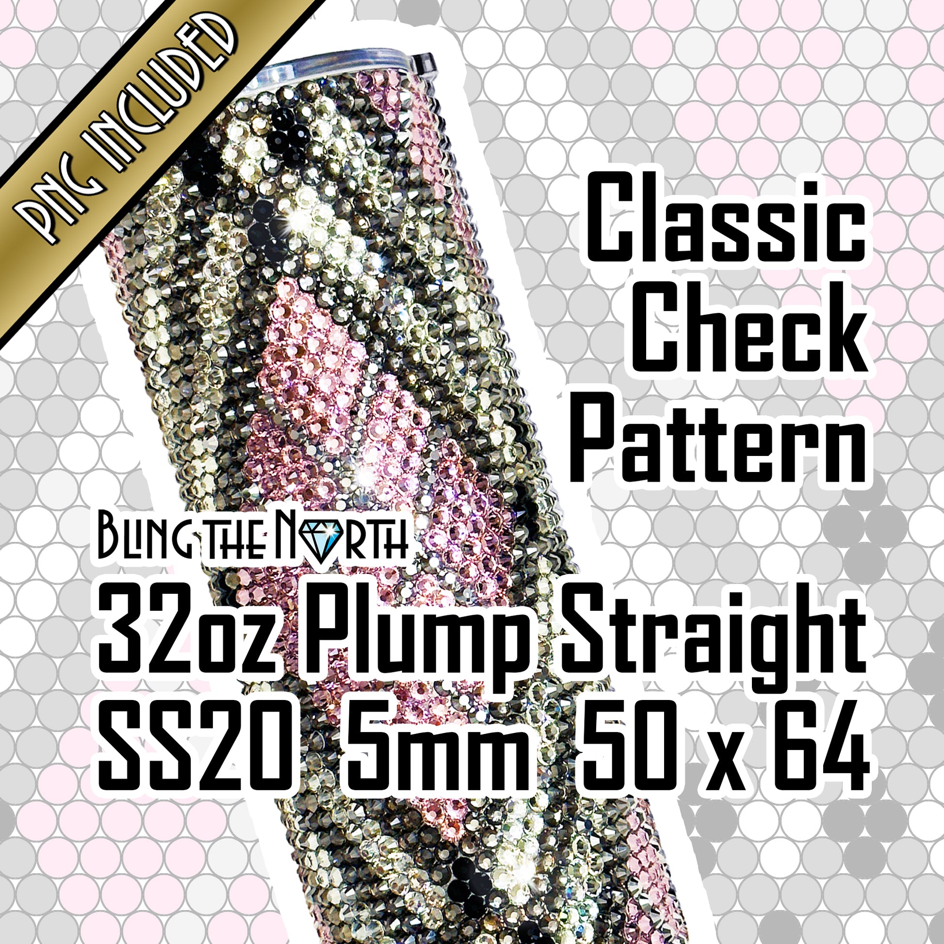 CLASSIC CHECK Rhinestone Pattern Template | SS20 5mm - 32oz Plump Straight Tumbler Design | PNG for Sublimation or Vinyl