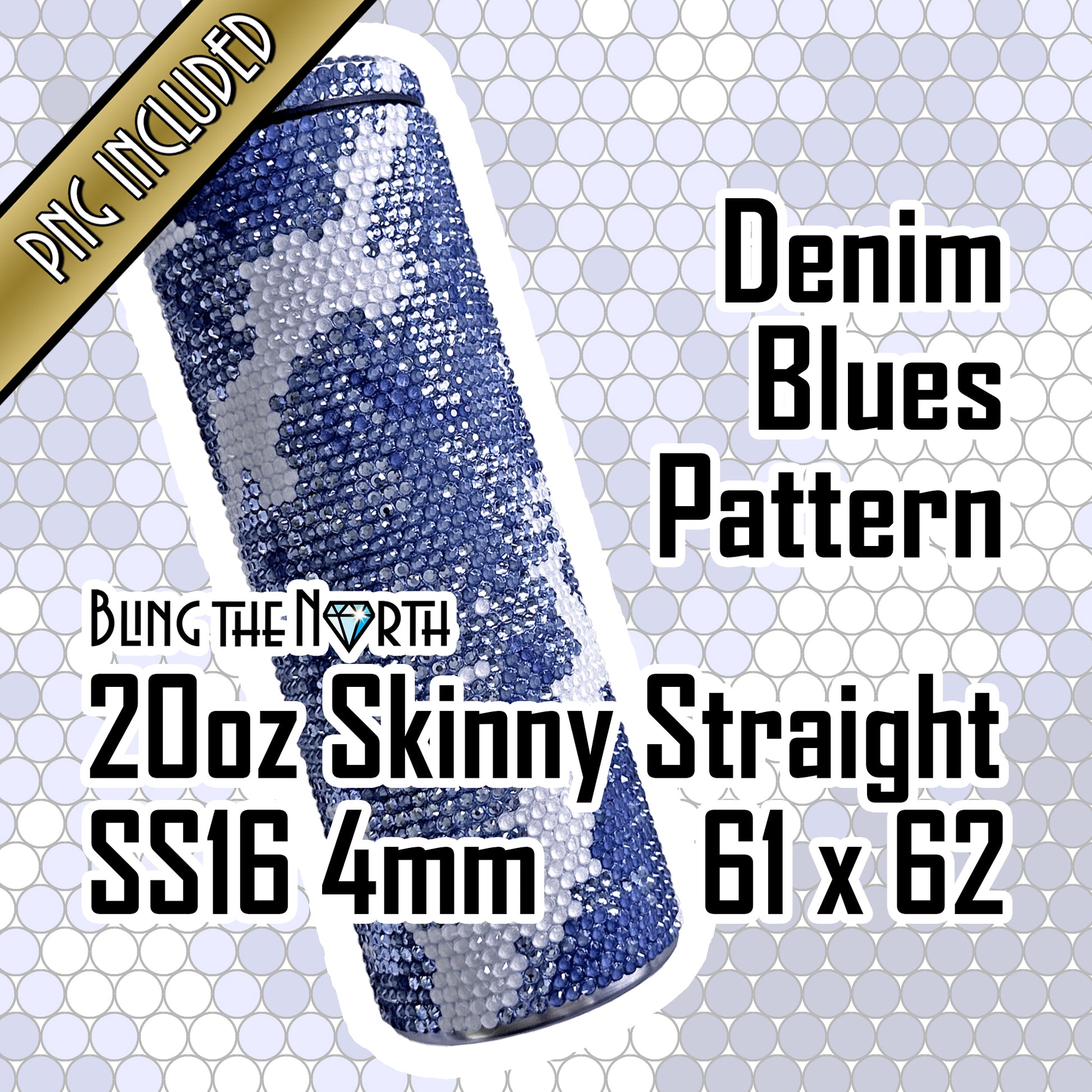 DENIM BLUES Rhinestone Pattern Template | SS16 4mm - 20oz Skinny Straight Tumbler Design | PNG for Sublimation or Vinyl