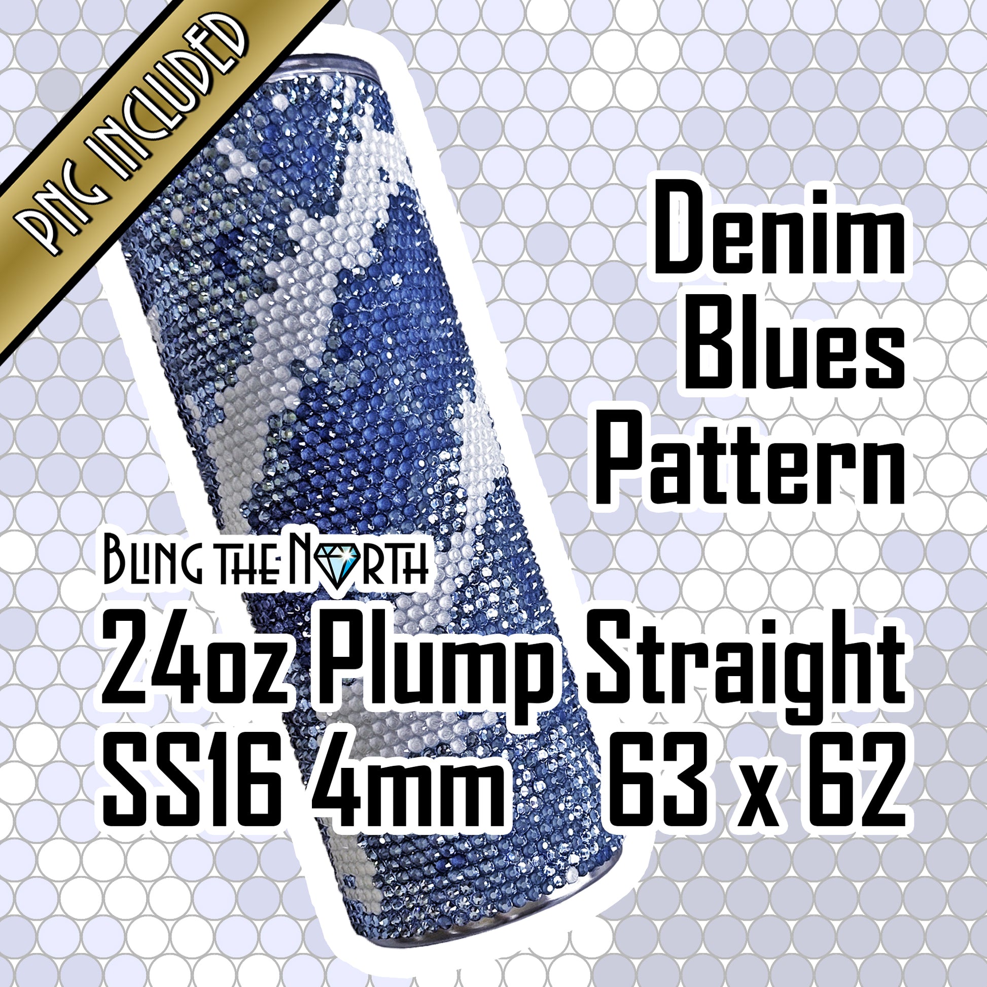 DENIM BLUES Rhinestone Pattern Template | SS16 4mm - 24oz Plump Straight Tumbler Design | PNG for Sublimation or Vinyl