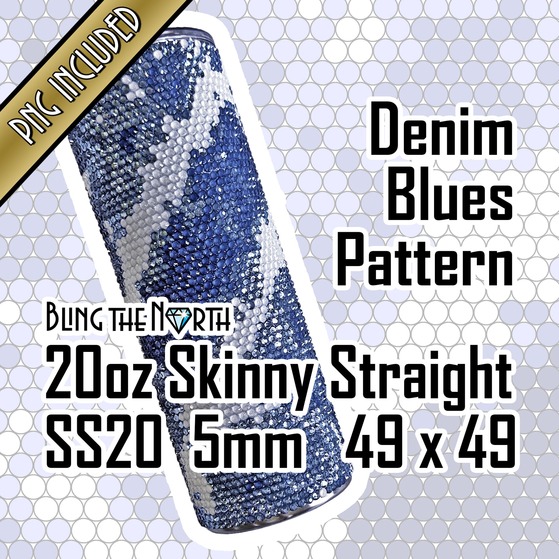DENIM BLUES Rhinestone Pattern Template | SS20 5mm - 20oz Skinny Straight Tumbler Design | PNG for Sublimation or Vinyl