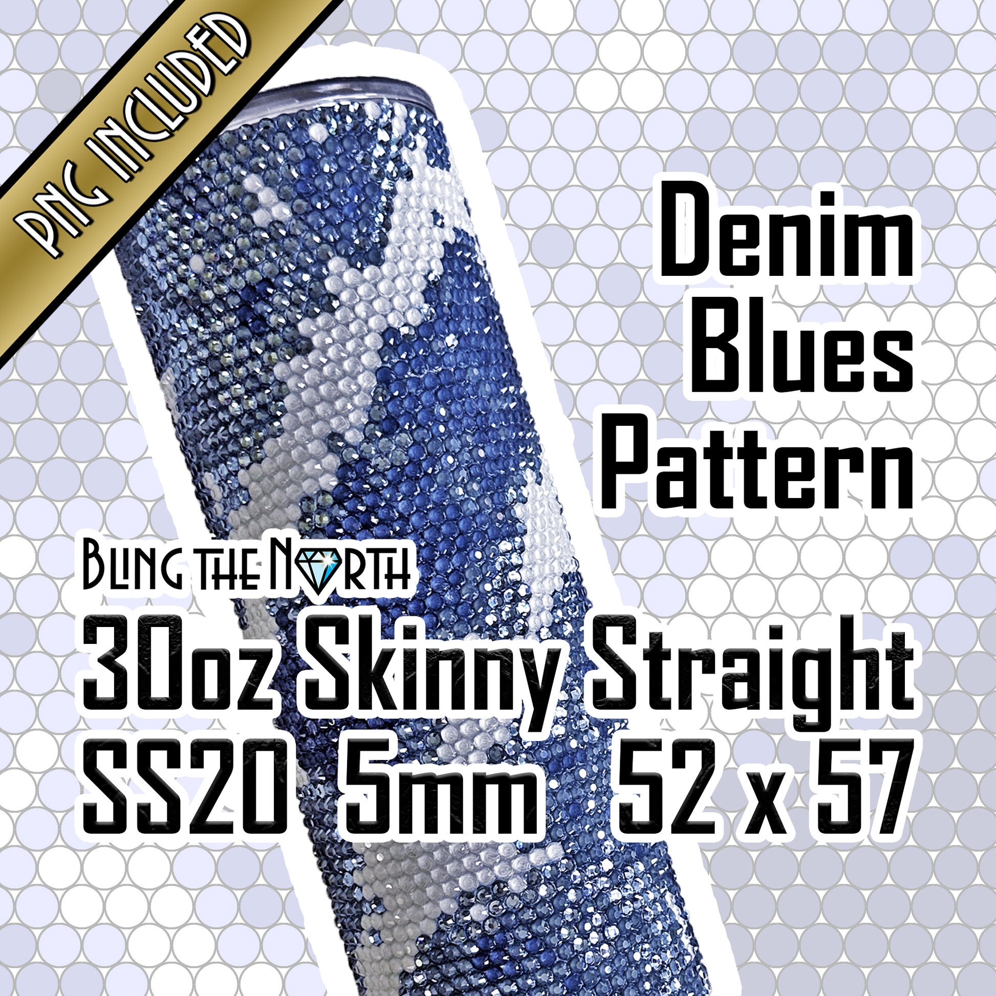 DENIM BLUES Rhinestone Pattern Template | SS20 5mm - 30oz Skinny Straight Tumbler Design | PNG for Sublimation or Vinyl