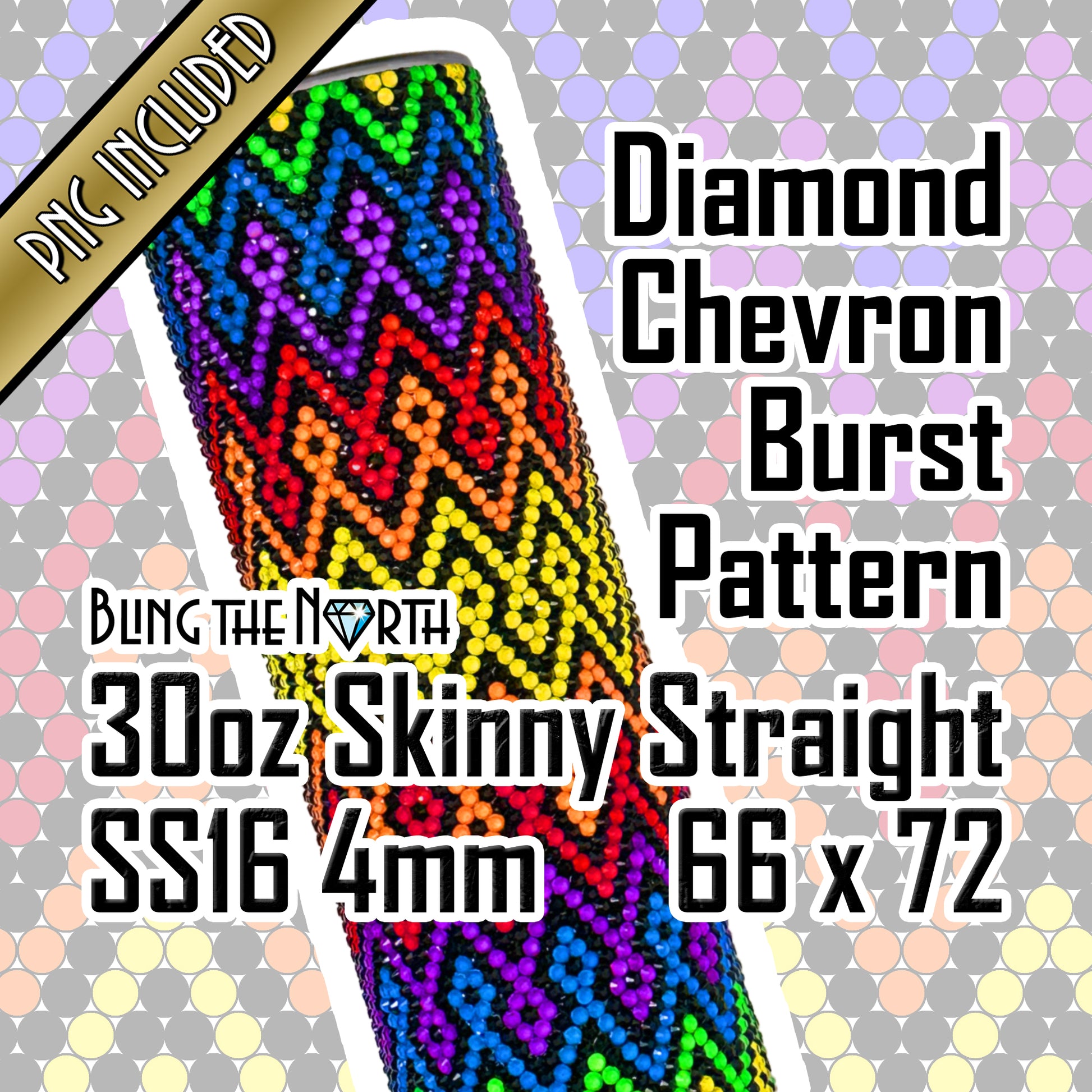 DIAMOND CHEVRON BURST Rhinestone Pattern Template | SS16 4mm - 30oz Skinny Straight Tumbler Design | PNG for Sublimation or Vinyl