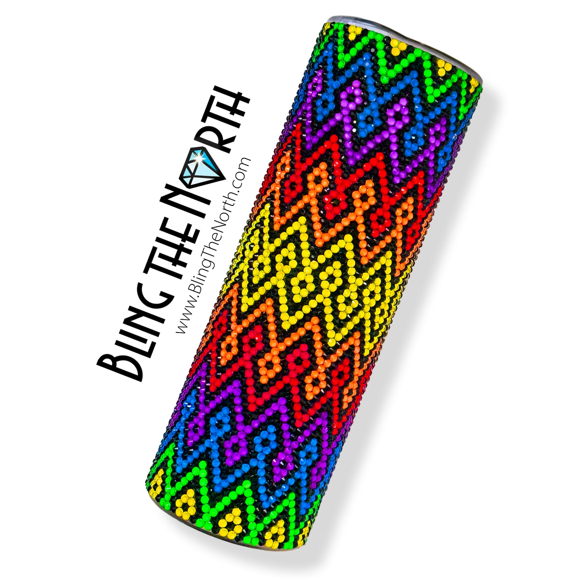 This pattern was designed for use with a 30oz STRAIGHT SKINNY or a 30oz SLURP tumbler from The Stainless Depot using SS16 rhinestones. The tumbler used must fit 66 rhinestones per row for 71 rows. Additional sizes of this design may be available in our store. Pattern is not guaranteed to fit all sizes, styles, or brands of tumblers.