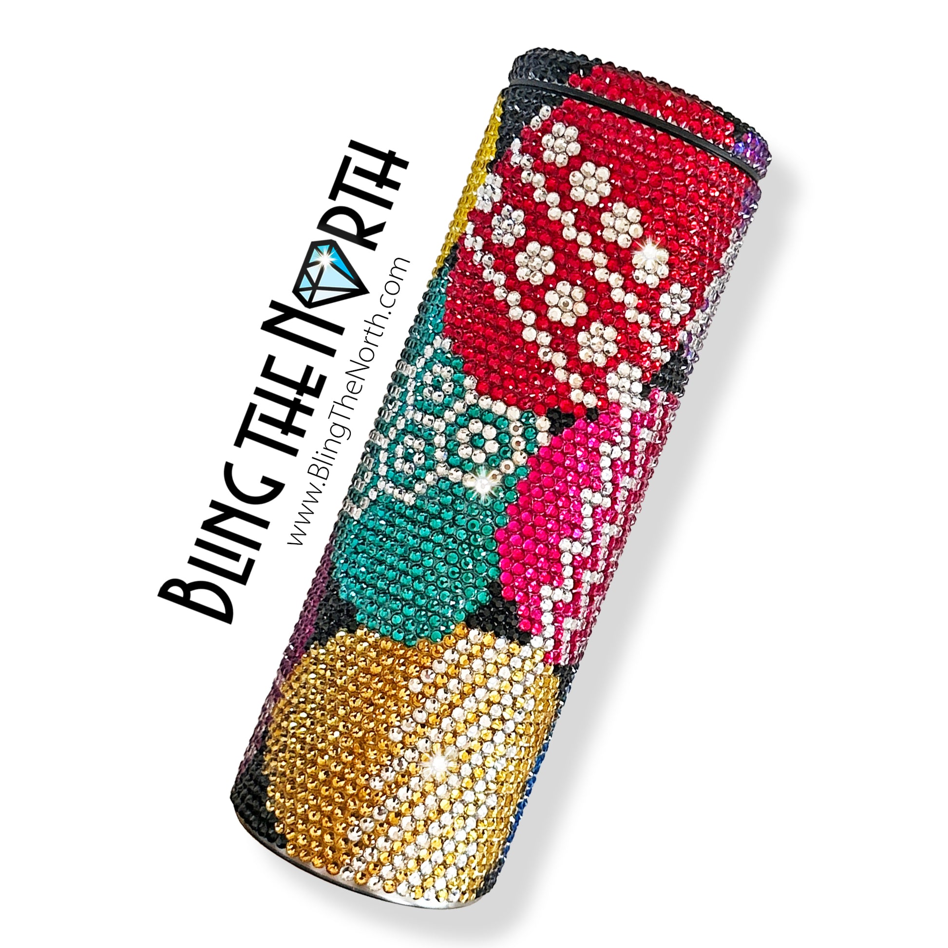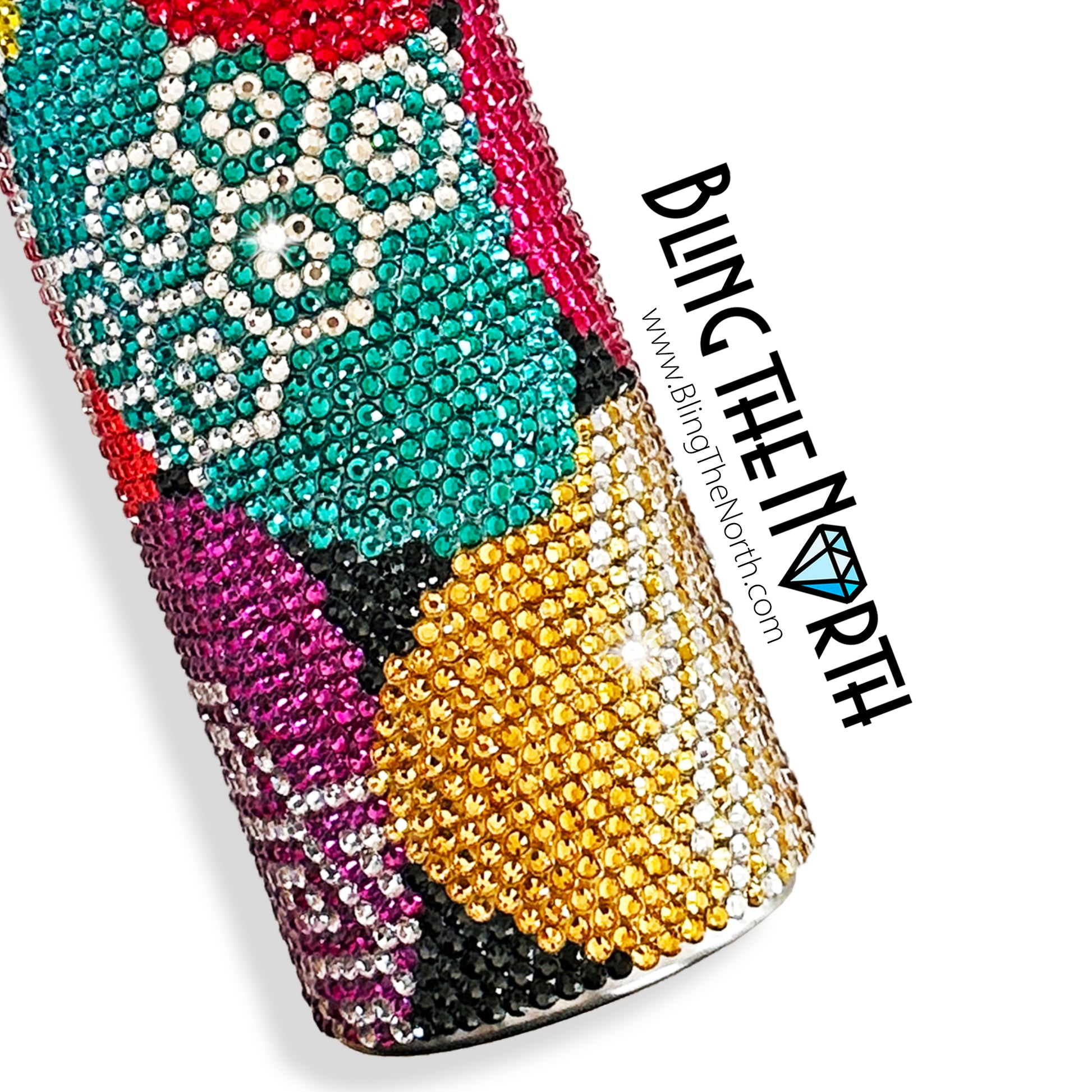 This pattern was designed for use with a 20oz STRAIGHT SKINNY or a 20oz SLURP tumbler from The Stainless Depot using SS16 rhinestones. The tumbler used must fit 61 rhinestones per row for 62 rows. Additional sizes of this design may be available in our store. Pattern is not guaranteed to fit all sizes, styles, or brands of tumblers.