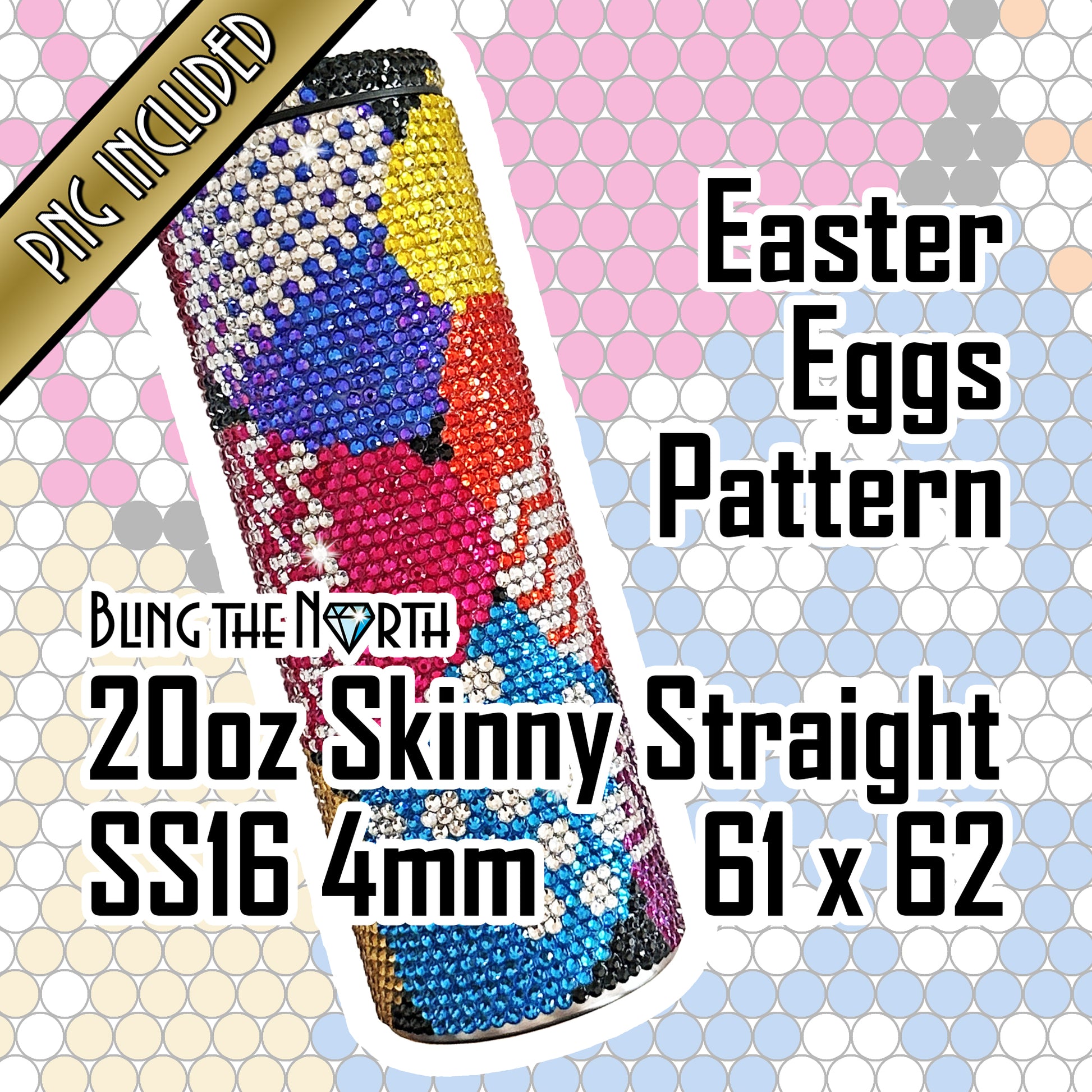 EASTER EGGS - BRIGHT Rhinestone Pattern Template | SS16 4mm - 20oz Skinny Straight Tumbler Design | PNG for Sublimation or Vinyl