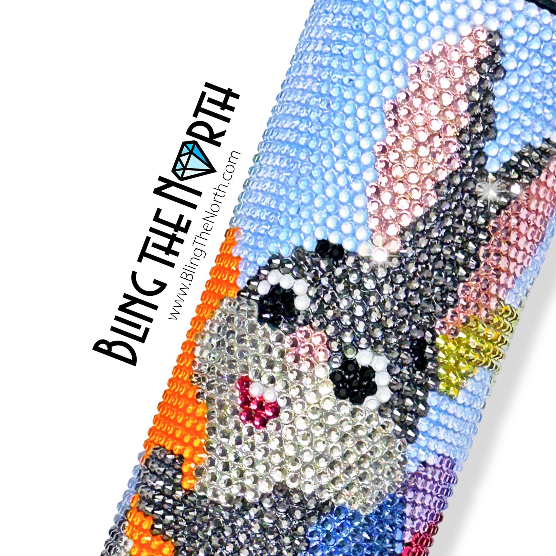 This pattern was designed for use with a 20oz STRAIGHT SKINNY or a 20oz SLURP tumbler from The Stainless Depot using SS16 rhinestones. The tumbler used must fit 61 rhinestones per row for 62 rows. Additional sizes of this design may be available in our store. Pattern is not guaranteed to fit all sizes, styles, or brands of tumblers.