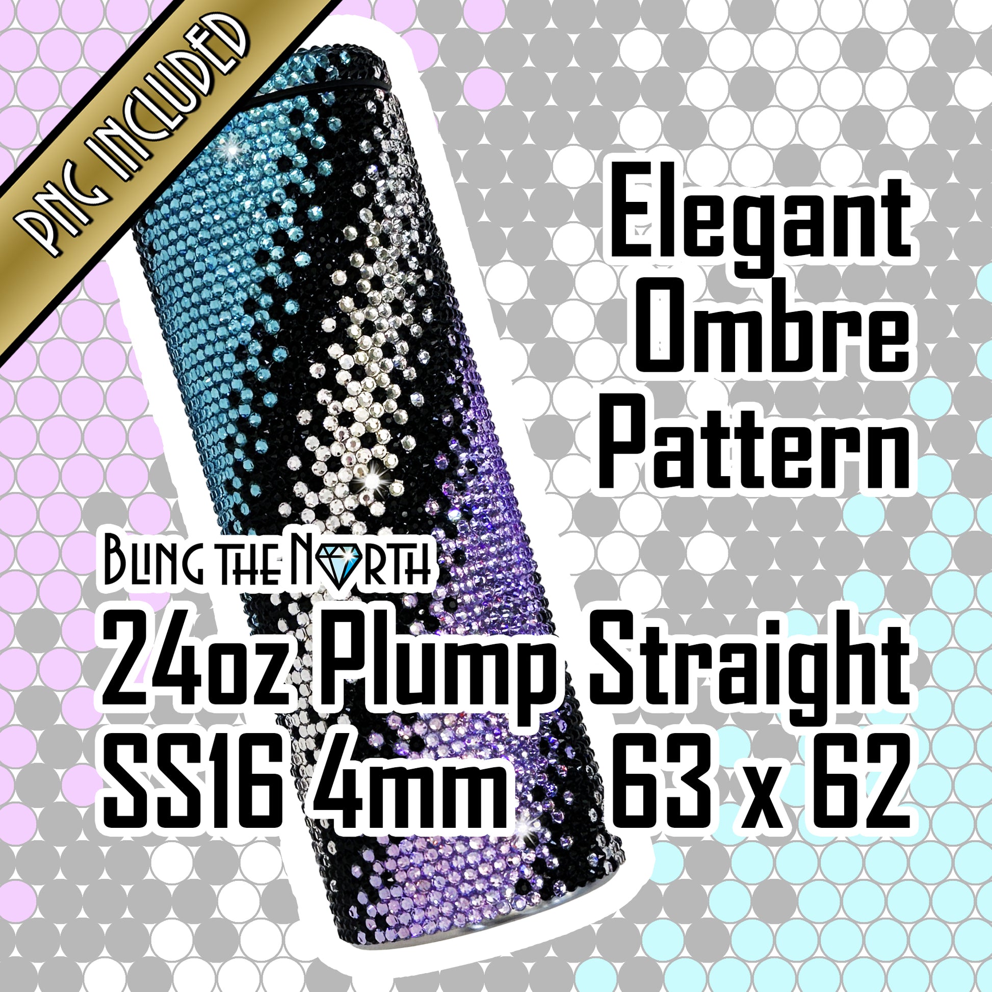 ELEGANT OMBRE Rhinestone Pattern Template | SS16 4mm - 24oz Plump Straight Tumbler Design | PNG for Sublimation or Vinyl