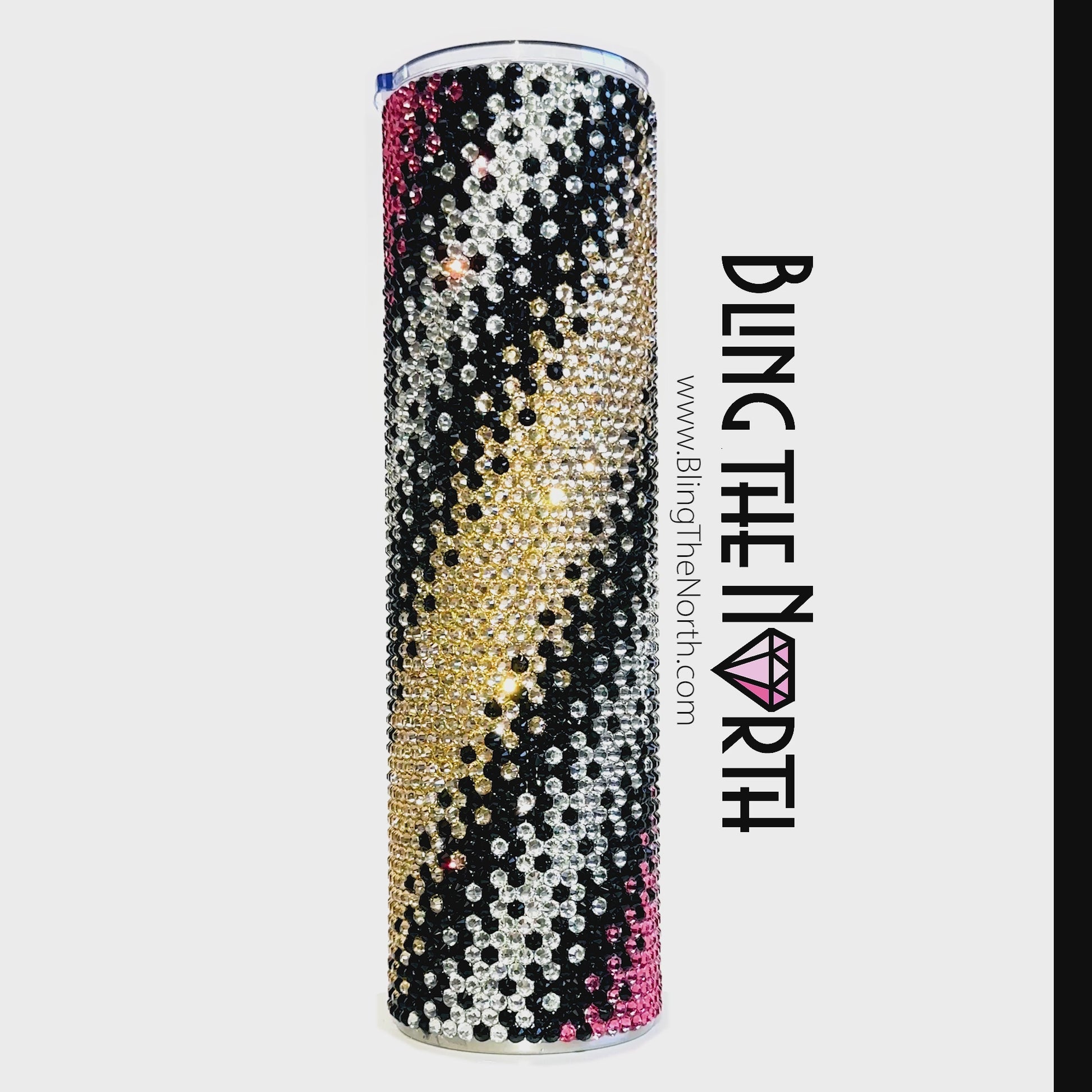 This pattern was designed for use with a 20oz STRAIGHT SKINNY or a 20oz SLURP tumbler from The Stainless Depot using SS20 rhinestones. The tumbler used must fit 49 rhinestones per row for 49 rows. Additional sizes of this design may be available in our store. Pattern is not guaranteed to fit all sizes, styles, or brands of tumblers.