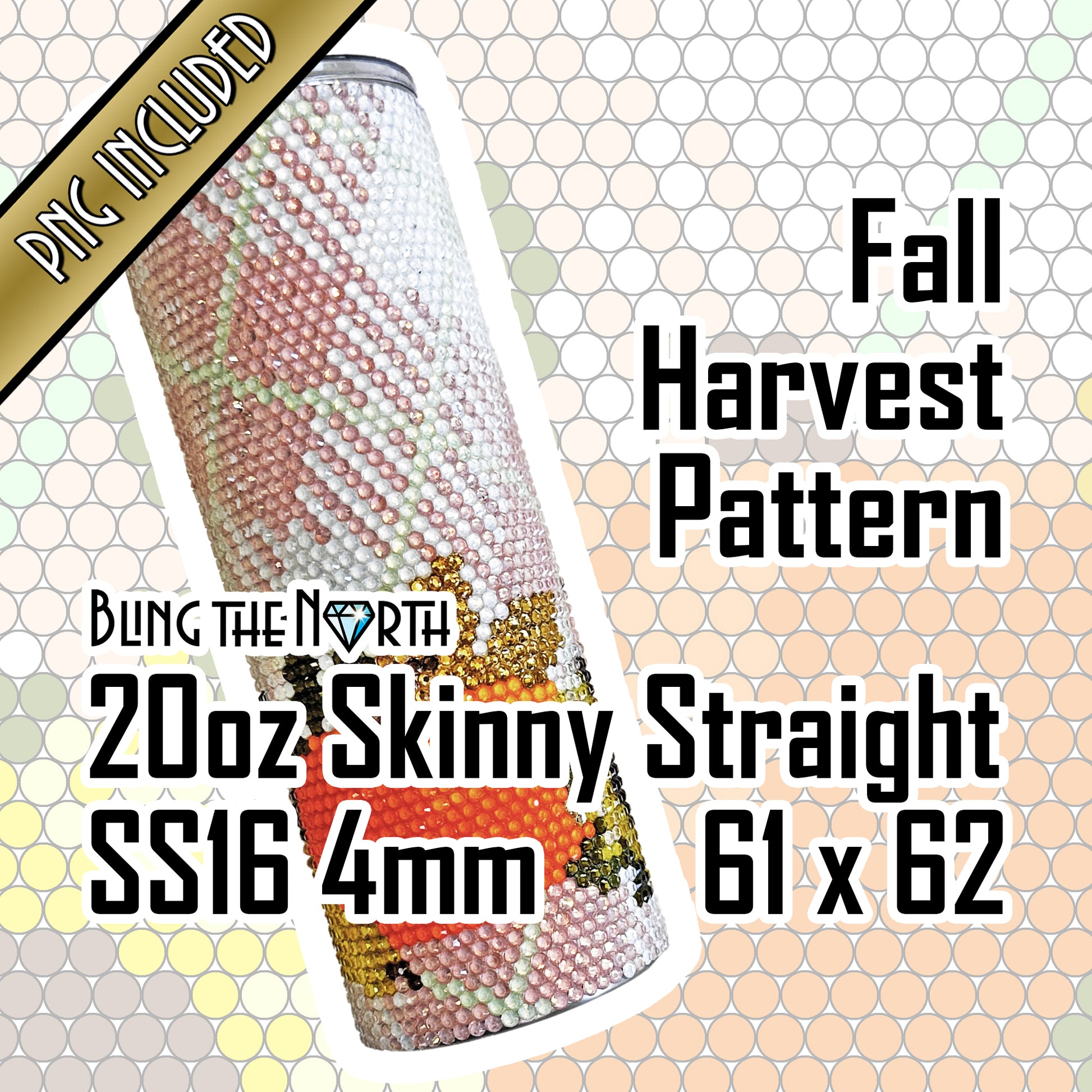 FALL HARVEST Rhinestone Pattern Template | SS16 4mm - 20oz Skinny Straight Tumbler Design | PNG for Sublimation or Vinyl