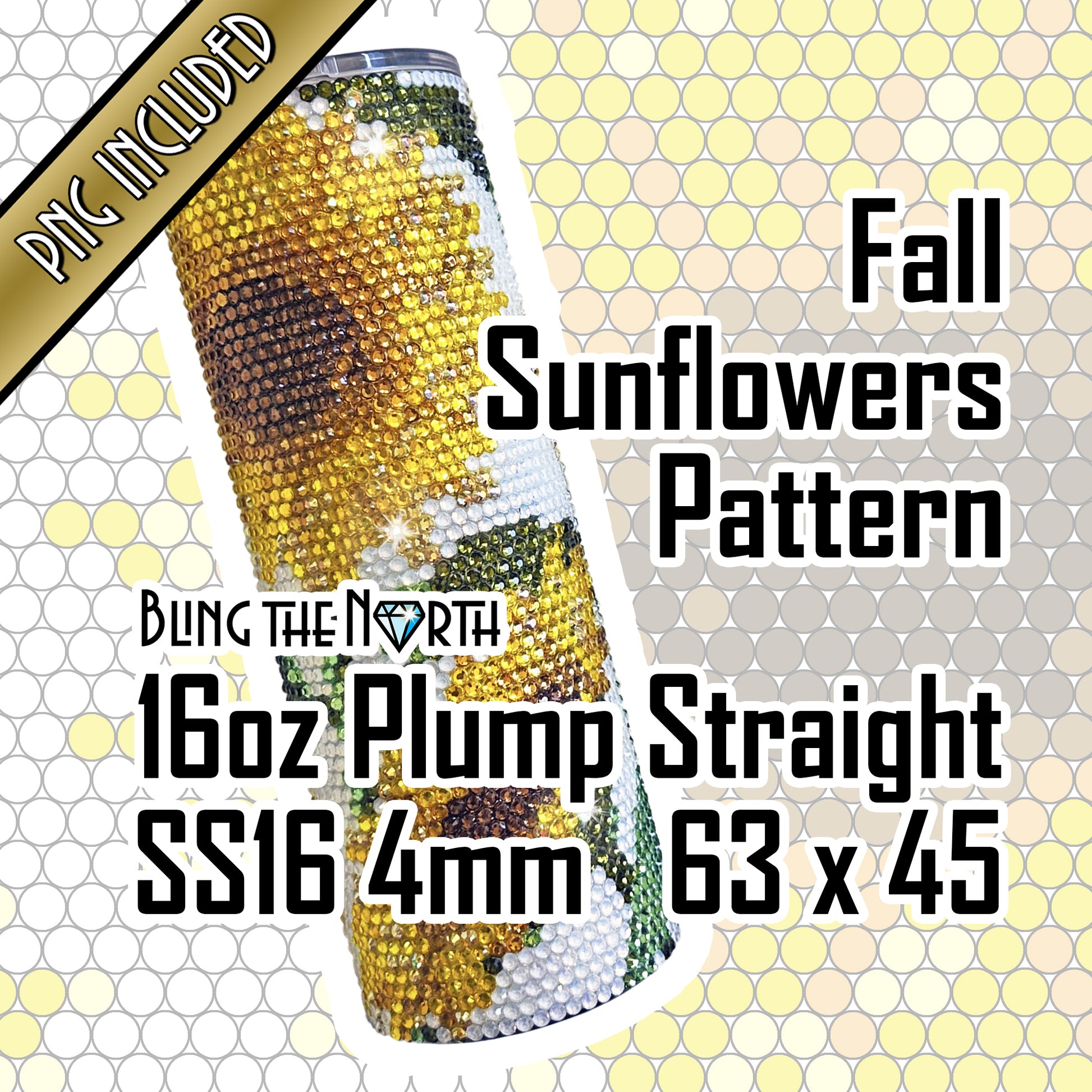 FALL SUNFLOWERS Rhinestone Pattern Template | SS16 4mm - 16oz Plump Straight Tumbler Design | PNG for Sublimation or Vinyl