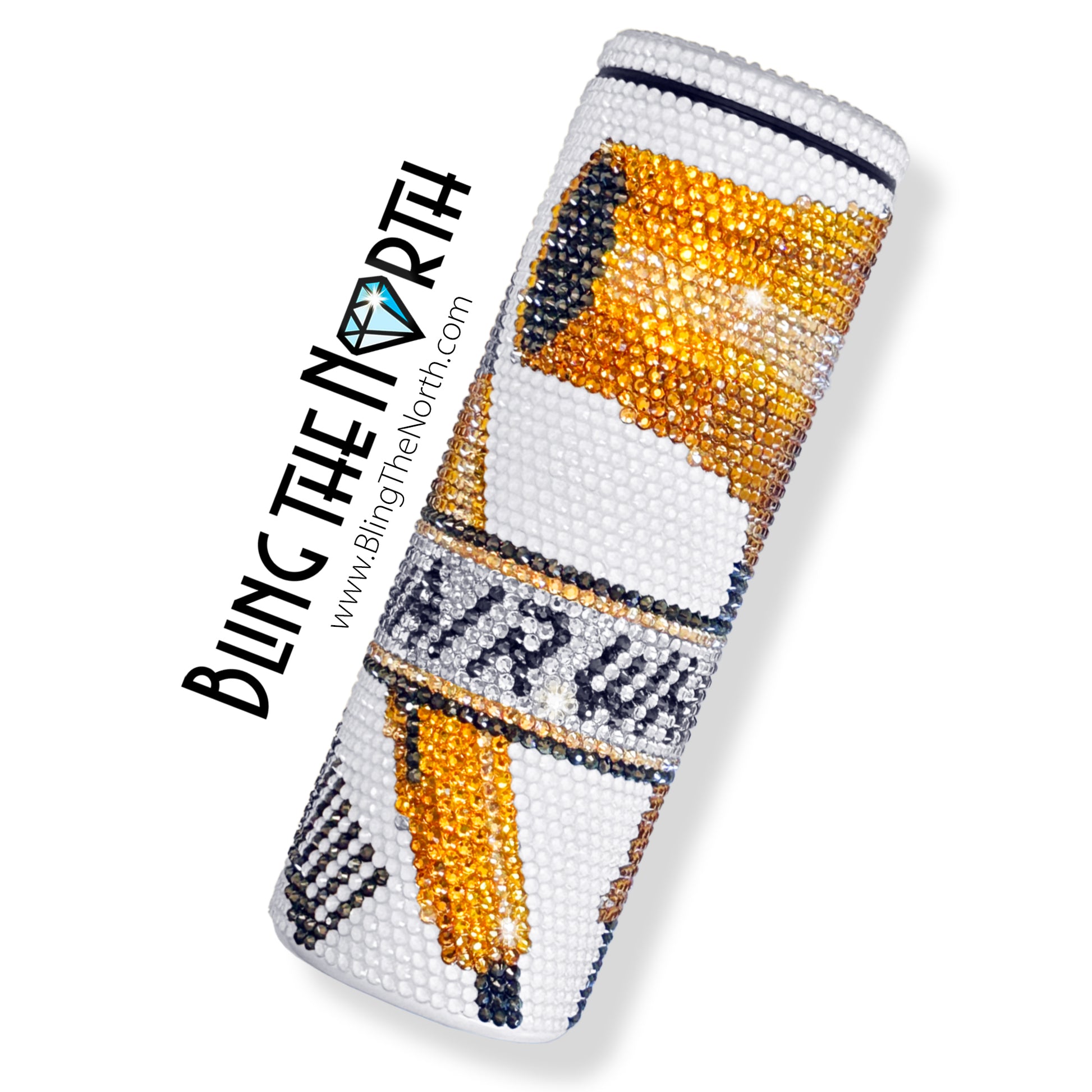 This pattern was designed for use with a 20oz STRAIGHT SKINNY or a 20oz SLURP tumbler from The Stainless Depot using SS16 rhinestones. The tumbler used must fit 61 rhinestones per row for 62 rows. Additional sizes of this design may be available in our store. Pattern is not guaranteed to fit all sizes, styles, or brands of tumblers.