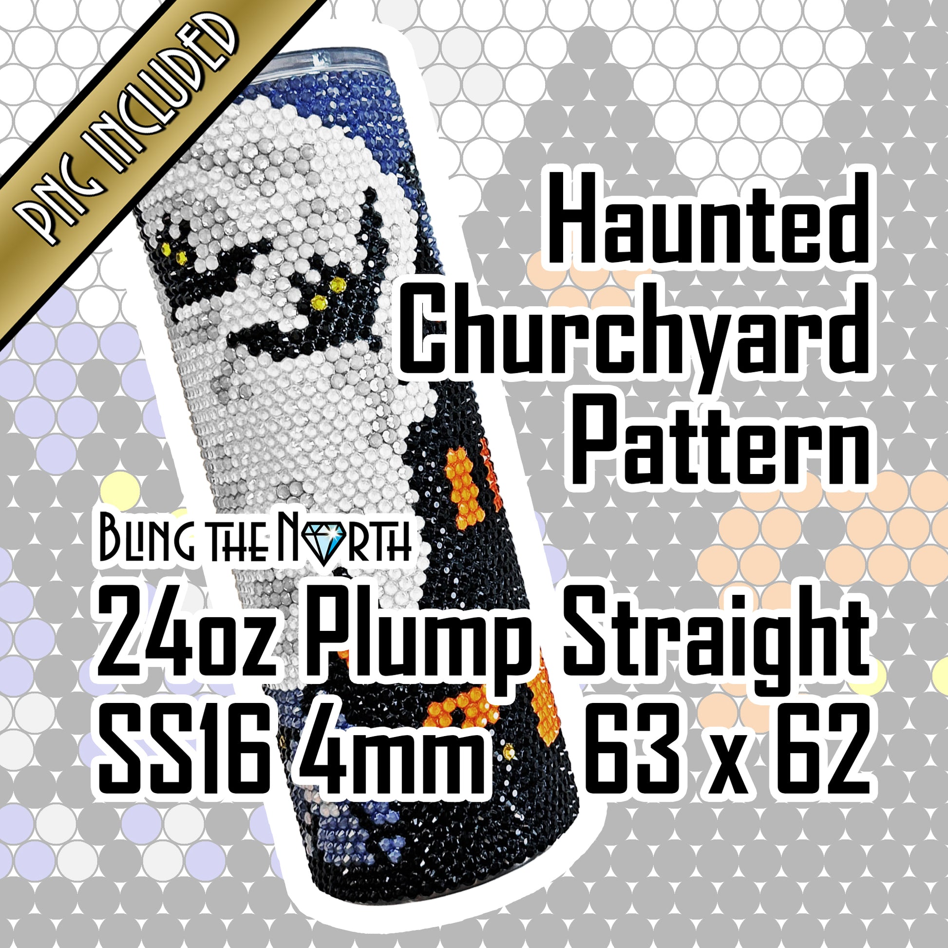 HAUNTED CHURCHYARD Rhinestone Pattern Template | SS16 4mm - 24oz Plump Straight Tumbler Design | Halloween | PNG for Sublimation or Vinyl