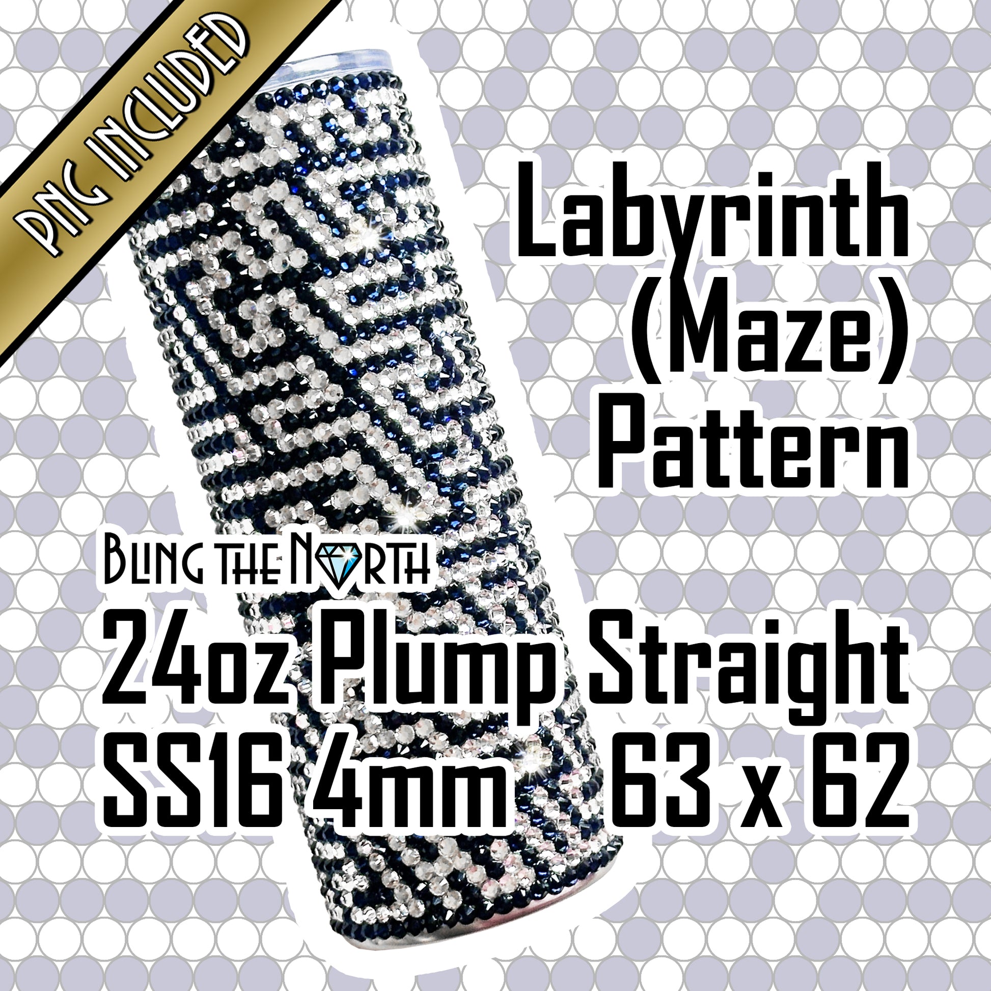LABYRINTH Maze Rhinestone Pattern Template | SS16 4mm - 24oz Plump Straight Tumbler Design | PNG for Sublimation or Vinyl