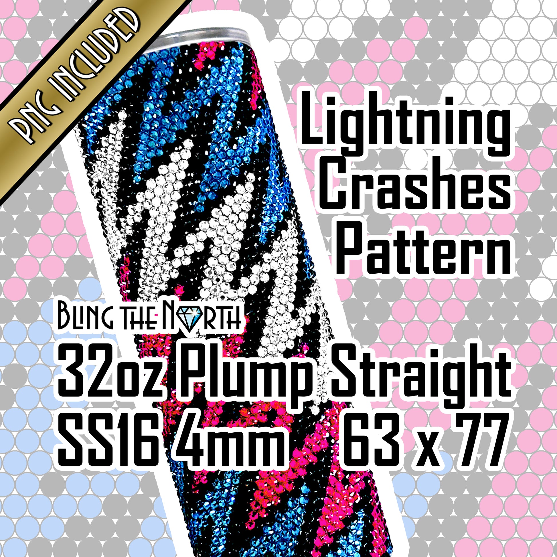 LIGHTNING CRASHES Rhinestone Pattern Template | SS16 4mm - 32oz Plump Straight Tumbler Design | PNG for Sublimation or Vinyl