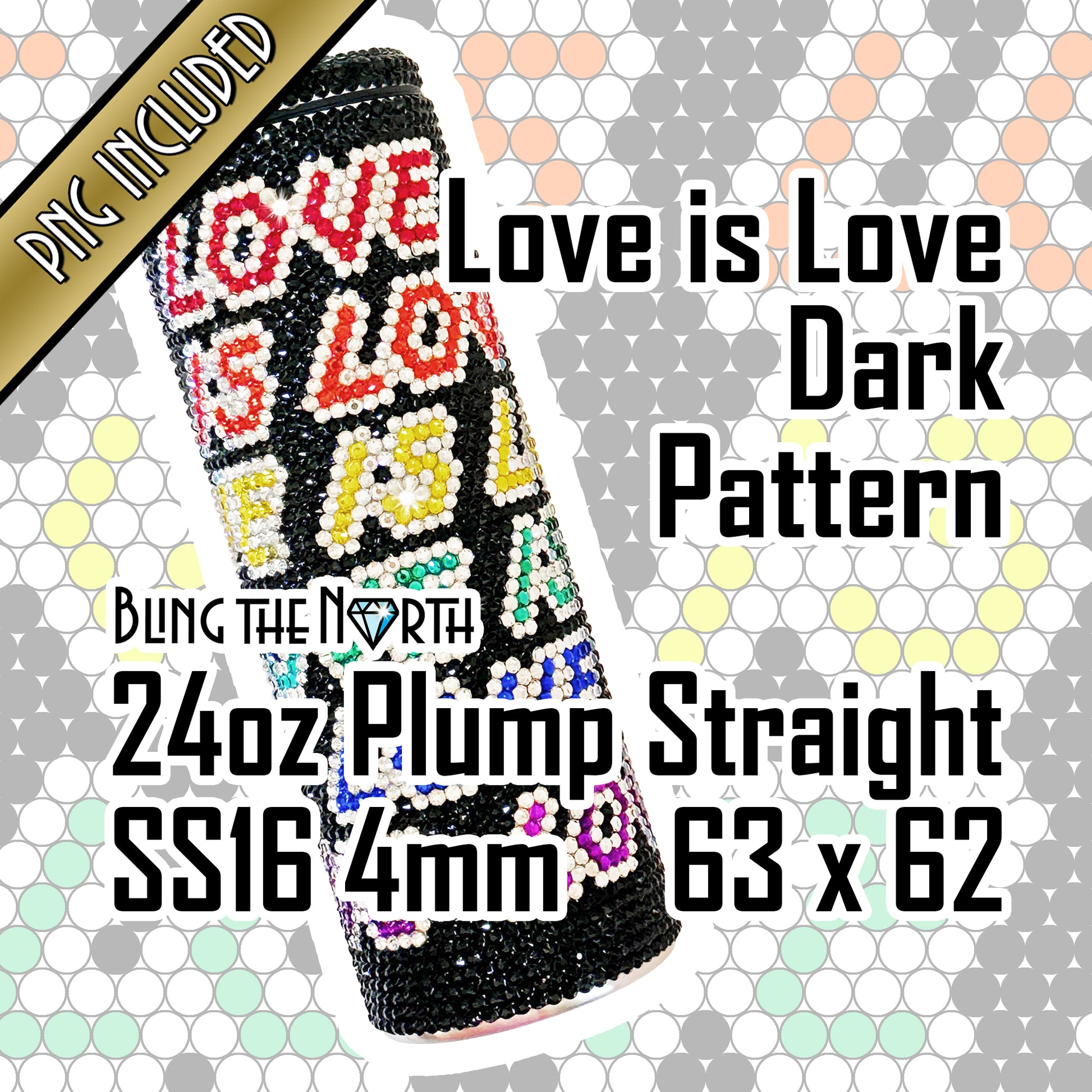 LOVE IS LOVE Dk Rhinestone Pattern Template | SS16 4mm - 24oz Plump Straight Tumbler Design | PNG for Sublimation or Vinyl