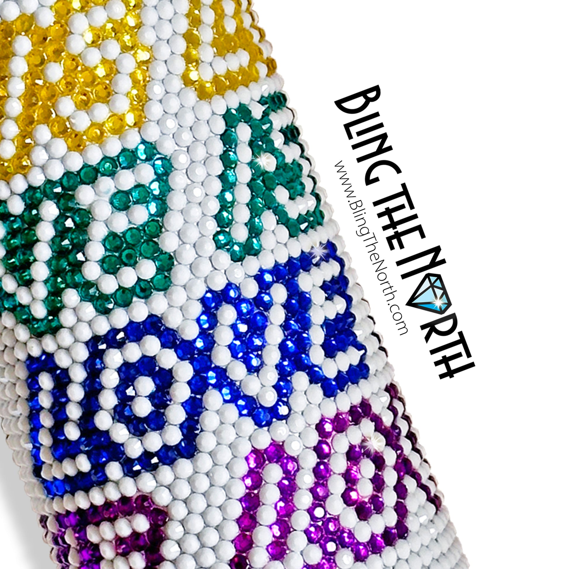 This pattern was designed for use with a 20oz STRAIGHT SKINNY or a 20oz SLURP tumbler from The Stainless Depot using SS16 rhinestones. The tumbler used must fit 61 rhinestones per row for 62 rows. Additional sizes of this design may be available in our store. Pattern is not guaranteed to fit all sizes, styles, or brands of tumblers.