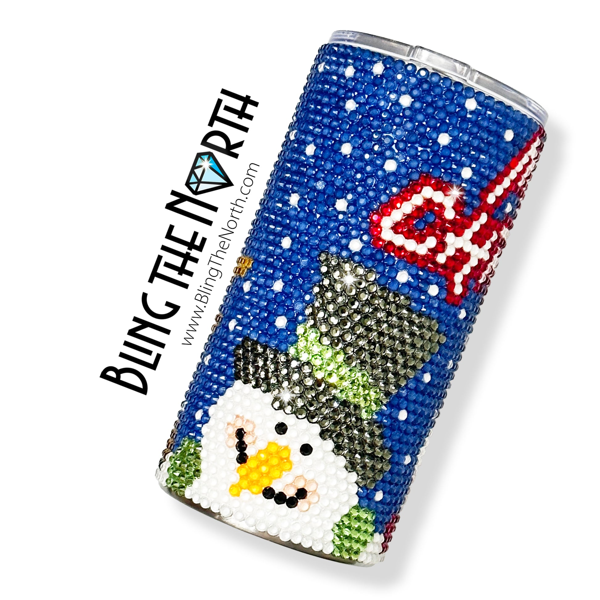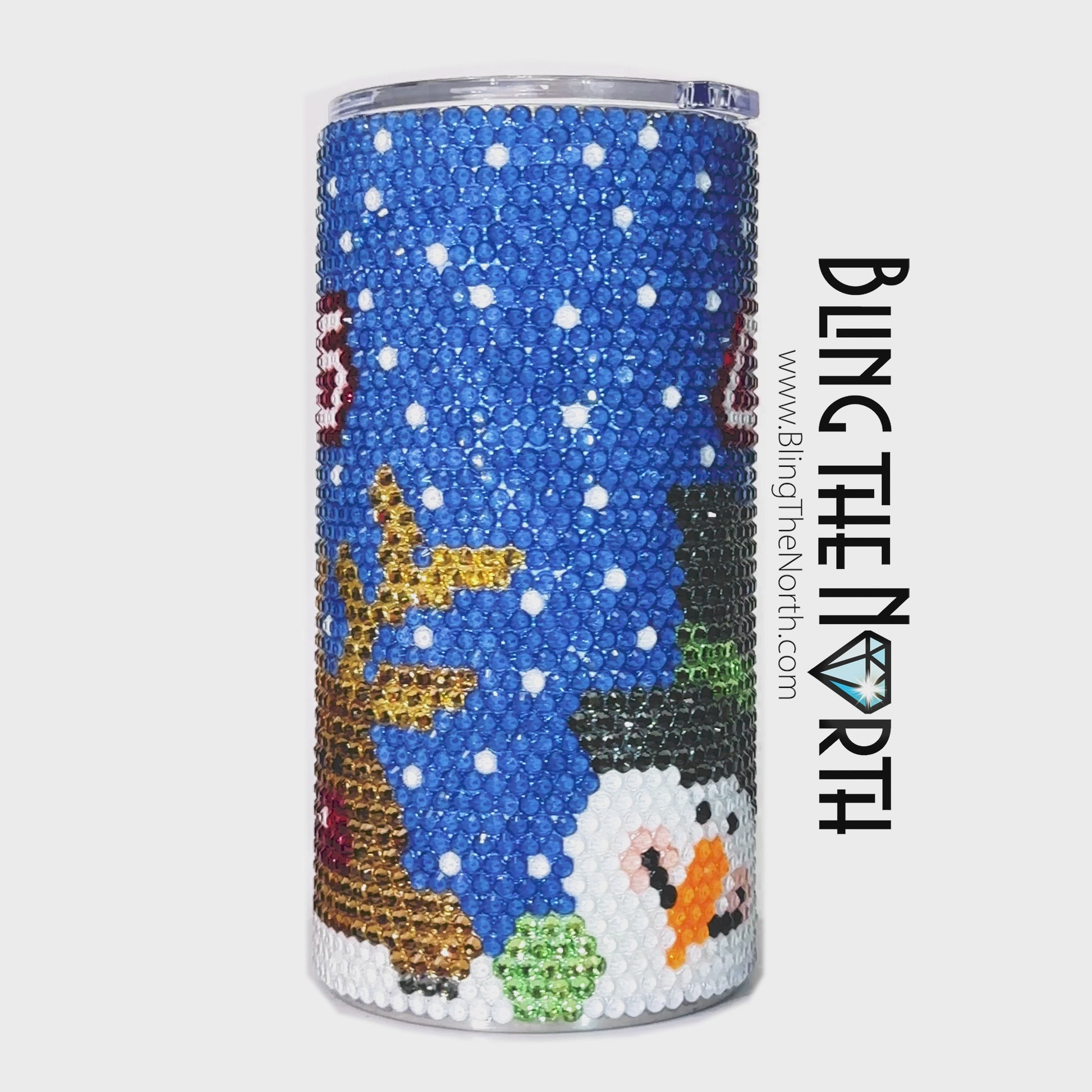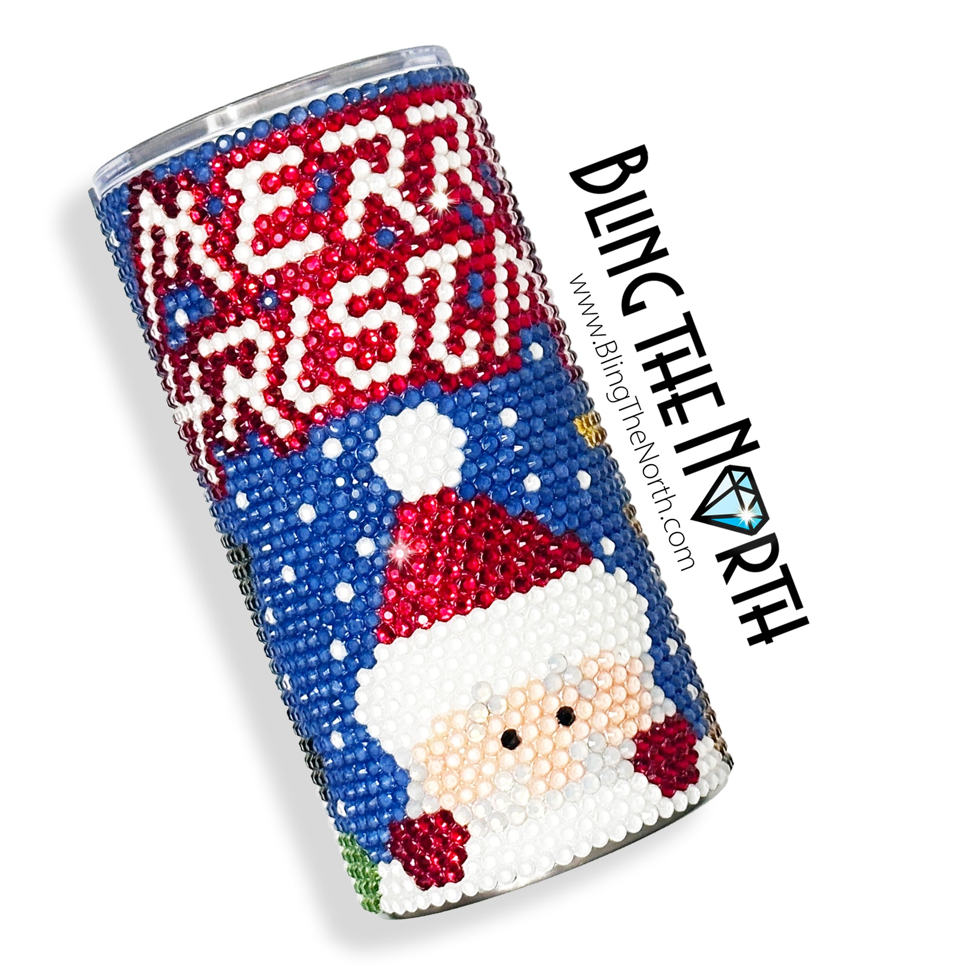 MERRY CHRISTMAS Rhinestone Duo Tumbler | 16oz Plump | Slim Can Koozie | Custom Bling Glass Rhinestones | Straw Incl