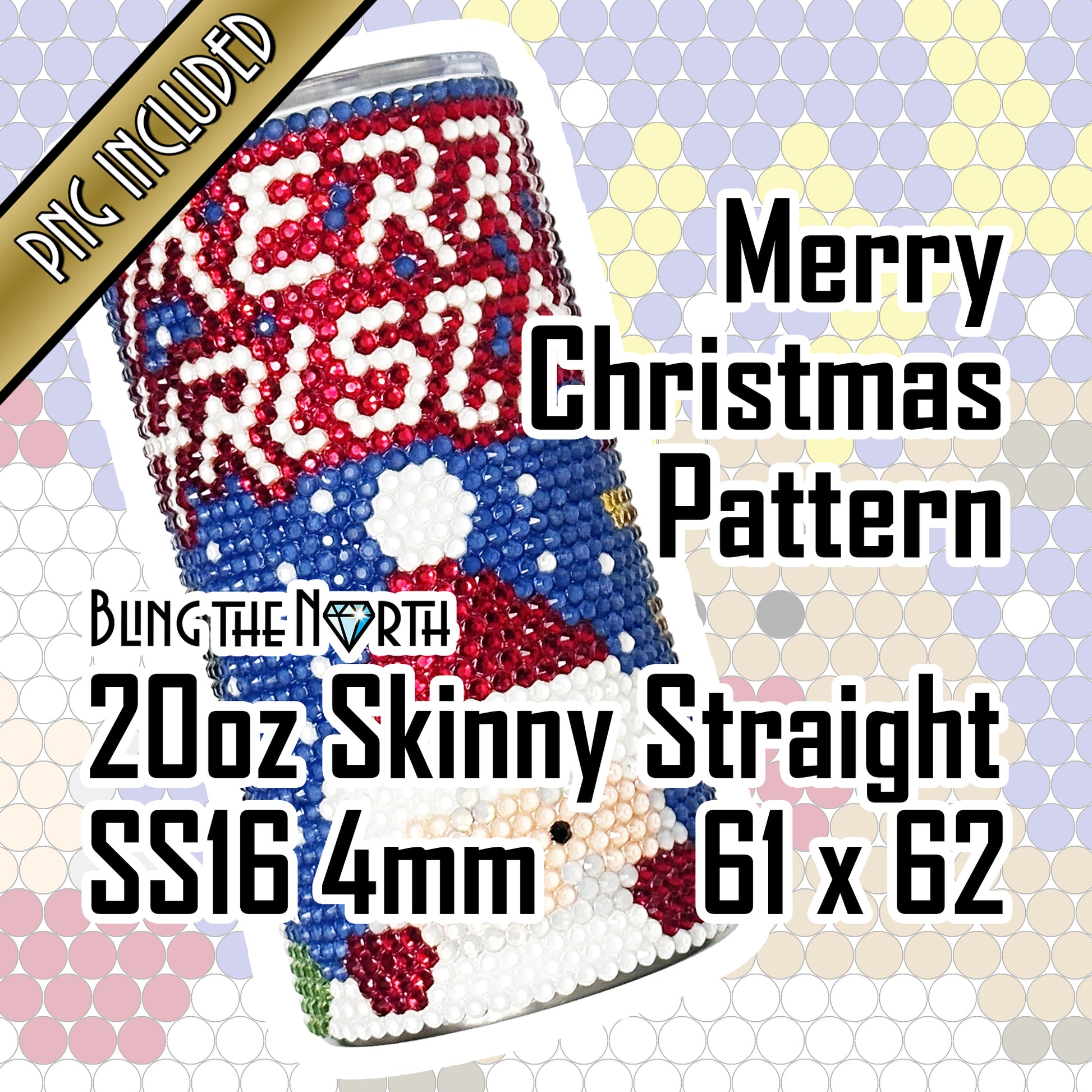 MERRY CHRISTMAS Rhinestone Pattern Template | SS16 4mm - 20oz Skinny Straight Tumbler Design | PNG for Sublimation or Vinyl