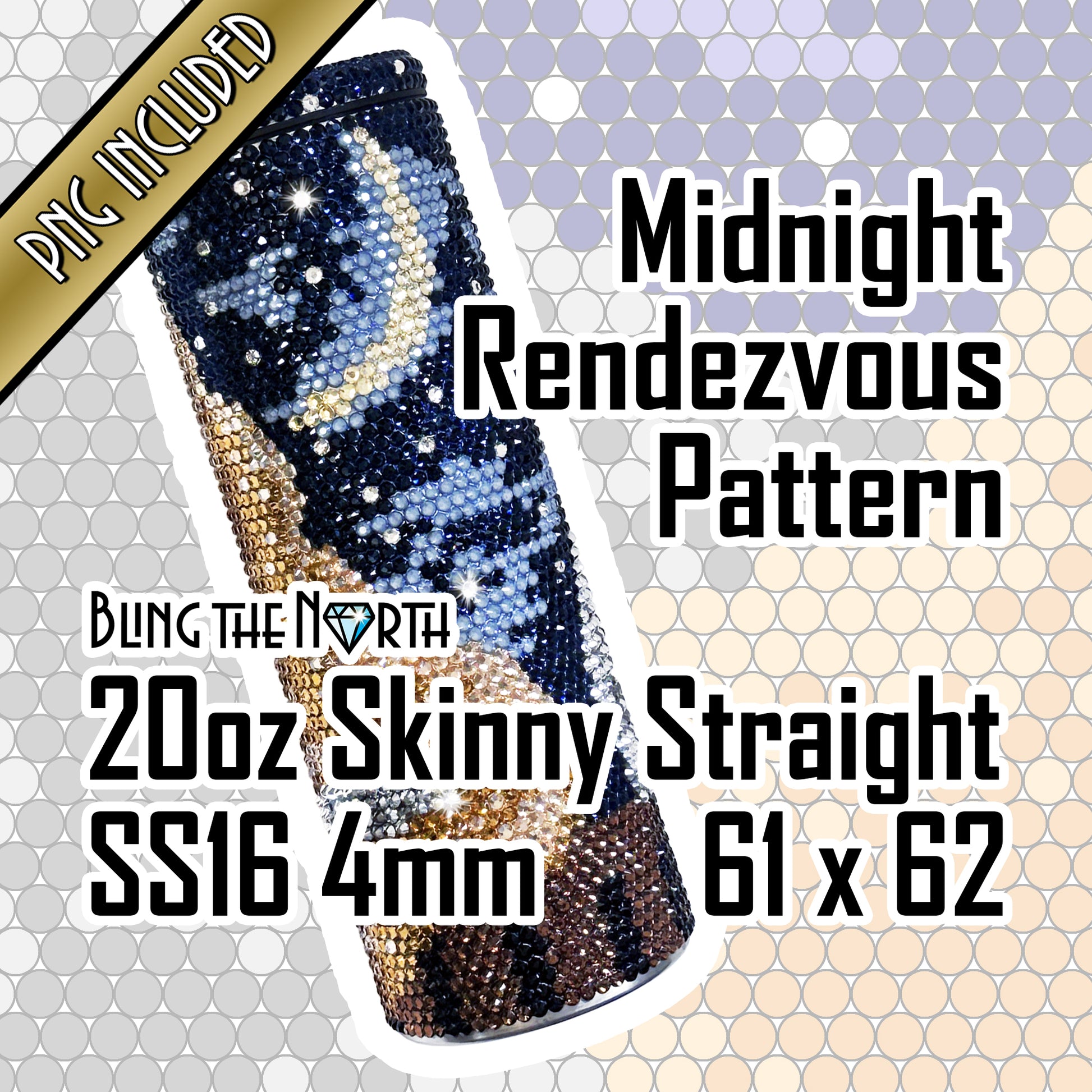 MIDNIGHT RENDEZVOUS Rhinestone Pattern Template | SS16 4mm - 20oz Skinny Straight Tumbler Design | PNG for Sublimation or Vinyl