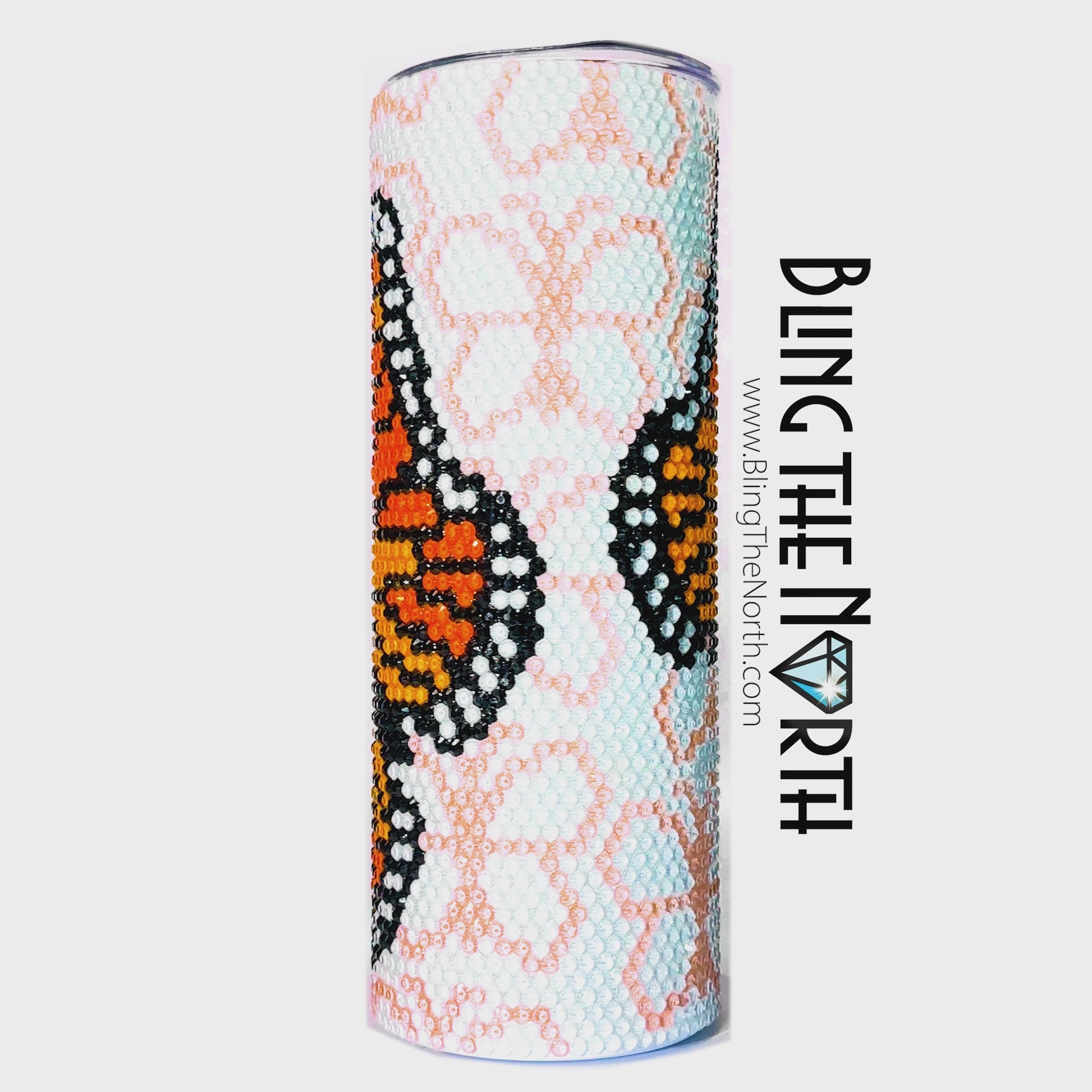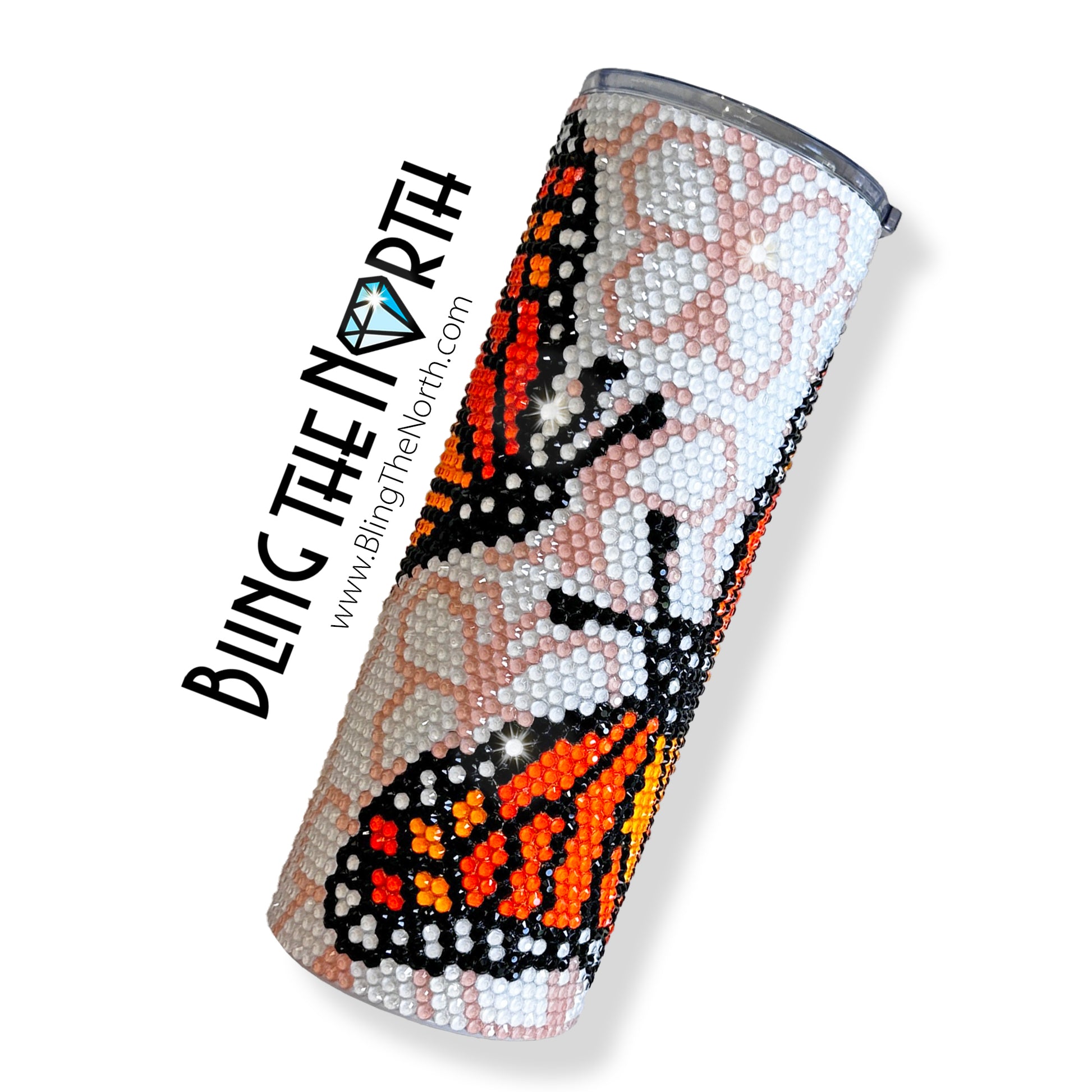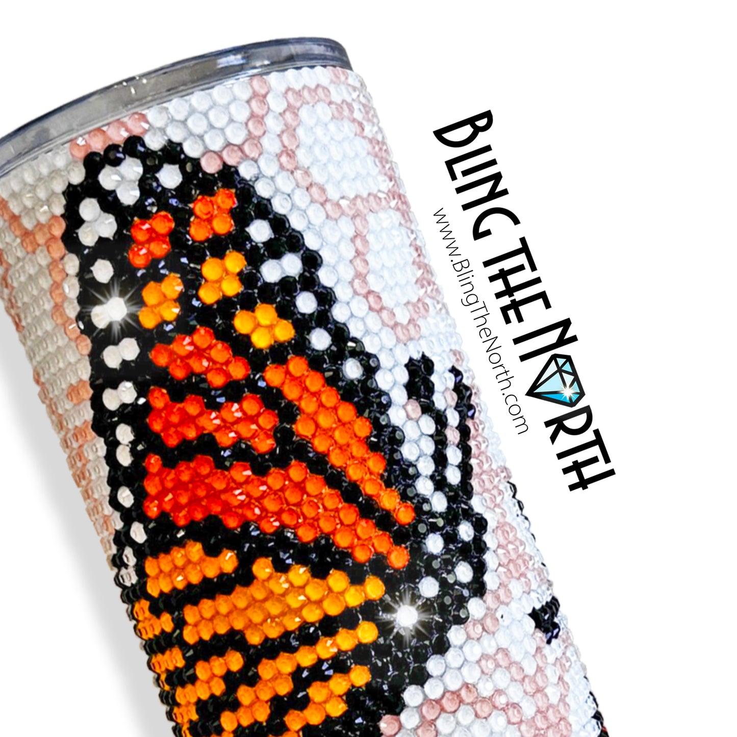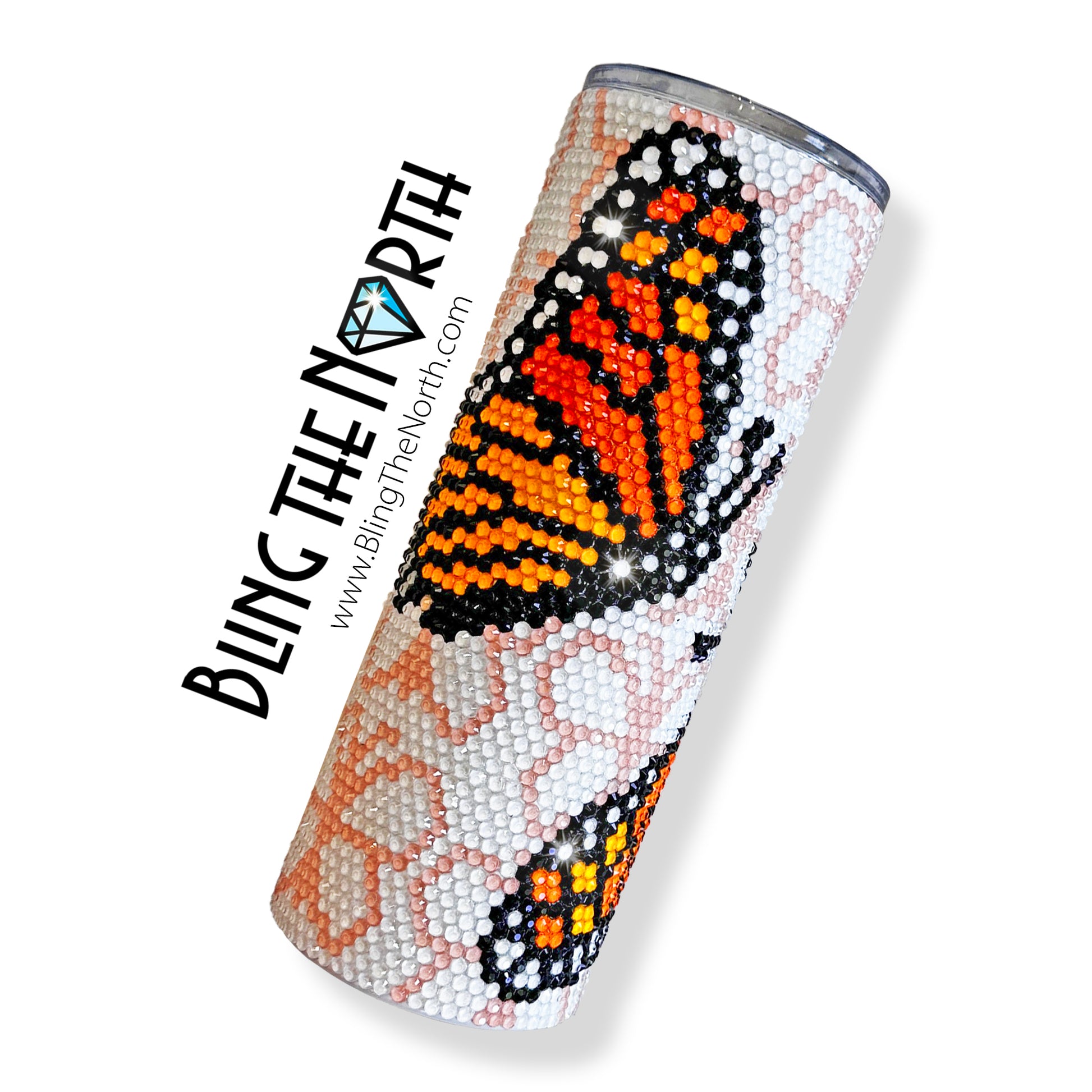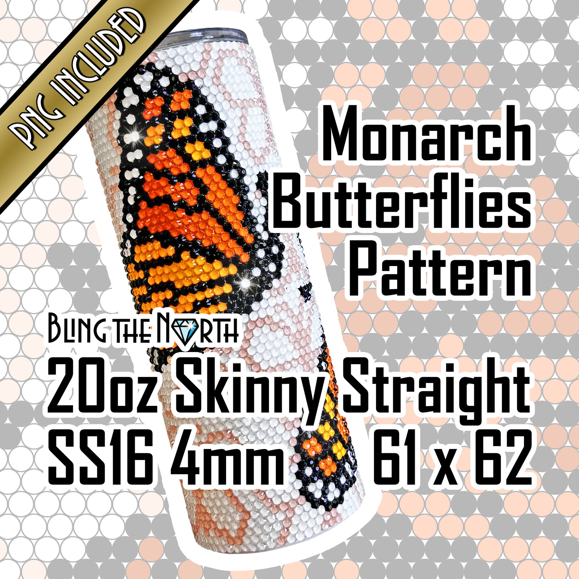 MONARCH BUTTERFLIES Rhinestone Pattern Template | SS16 4mm - 20oz Skinny Straight Tumbler Design | PNG for Sublimation or Vinyl