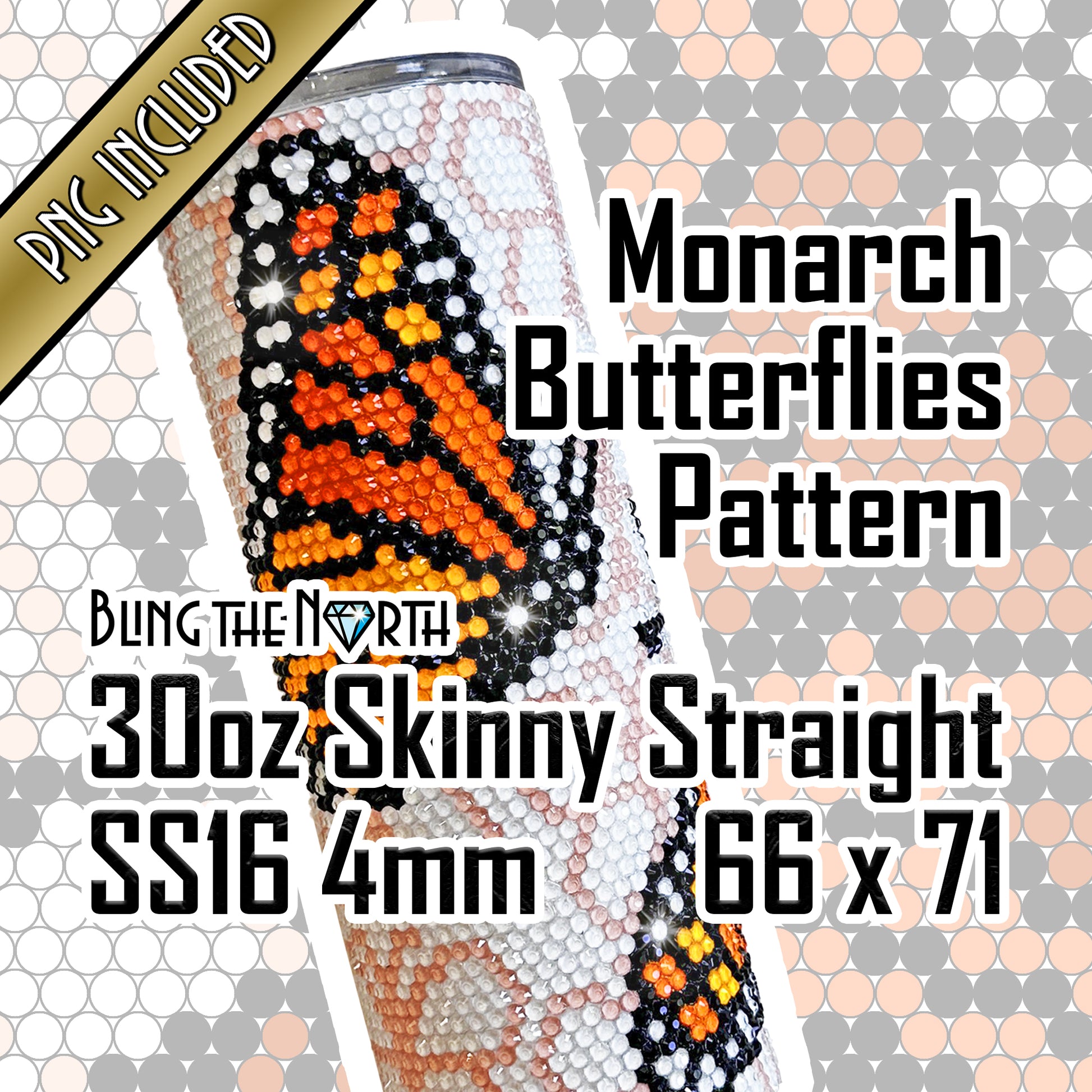 MONARCH BUTTERFLIES Rhinestone Pattern Template | SS16 4mm - 30oz Skinny Straight Tumbler Design | PNG for Sublimation or Vinyl