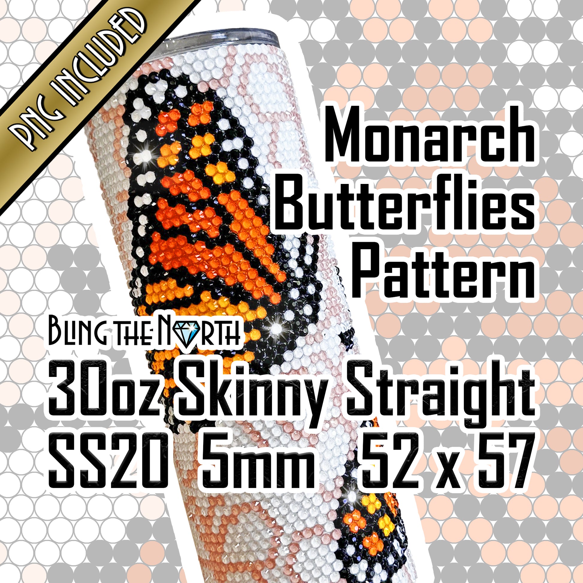 MONARCH BUTTERFLIES Rhinestone Pattern Template | SS20 5mm - 30oz Skinny Straight Tumbler Design | PNG for Sublimation or Vinyl