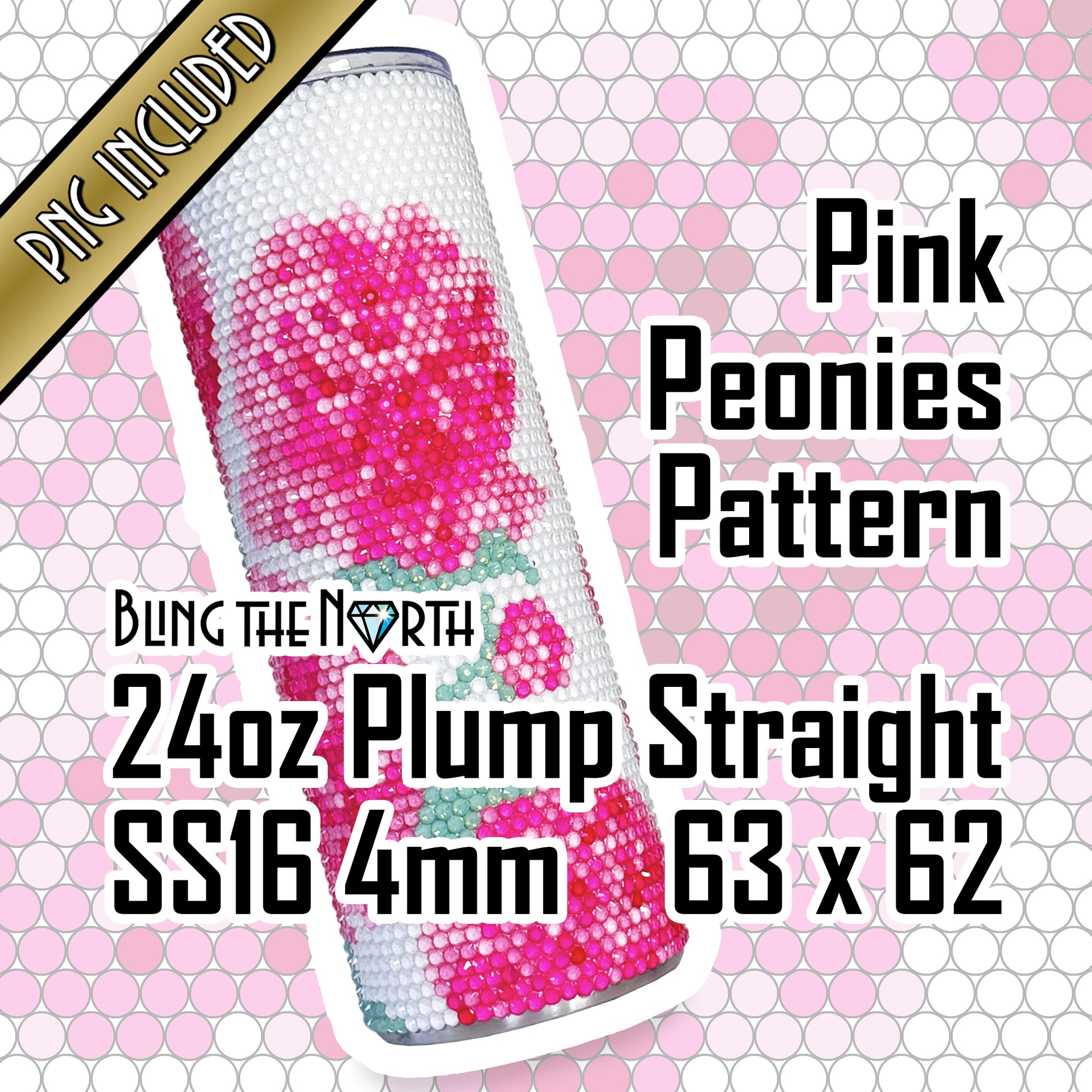 PINK PEONIES Rhinestone Pattern Template | SS16 4mm - 24oz Plump Straight Tumbler Design | PNG for Sublimation or Vinyl