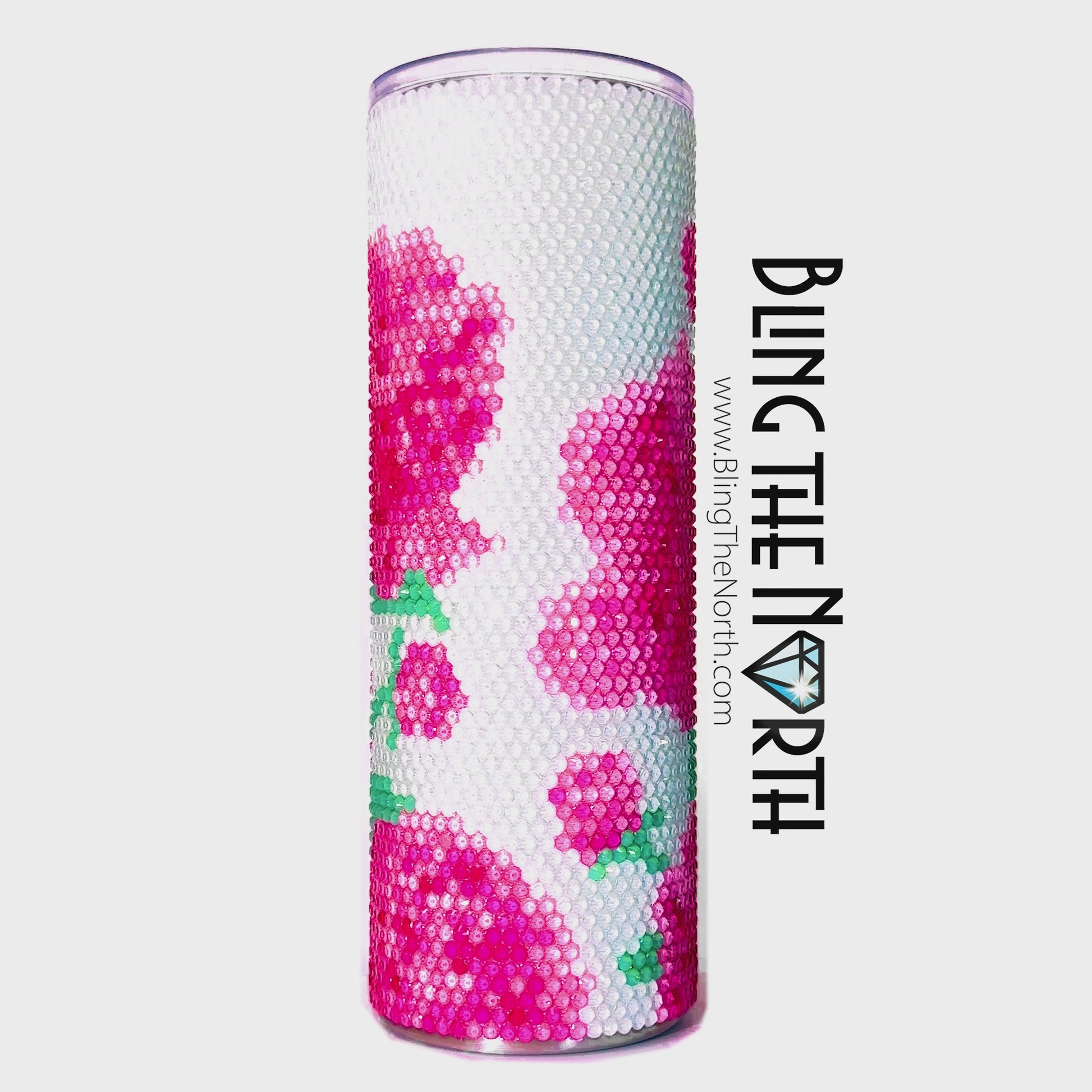 This pattern was designed for use with a 24oz PLUMP TUMBLER or the 24oz HYDROFIT from The Tipsy Magnolia using SS16 rhinestones. The tumbler used must fit 63 rhinestones per row for 62 rows. Additional sizes of this design may be available in our store. Pattern is not guaranteed to fit all sizes, styles, or brands of tumblers.